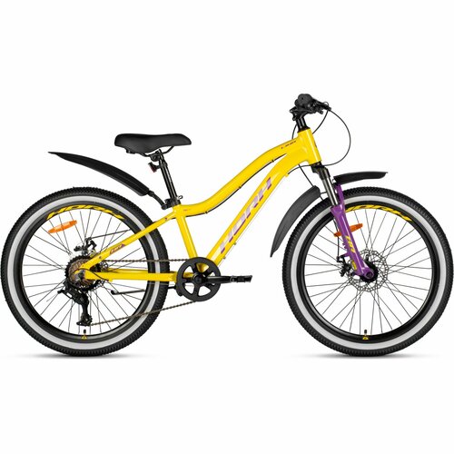 Велосипед HORH LIMA 24″ (2024) yellow-purple, детский для девочек, алюминиевая рама, 7 скоростей, колеса 24