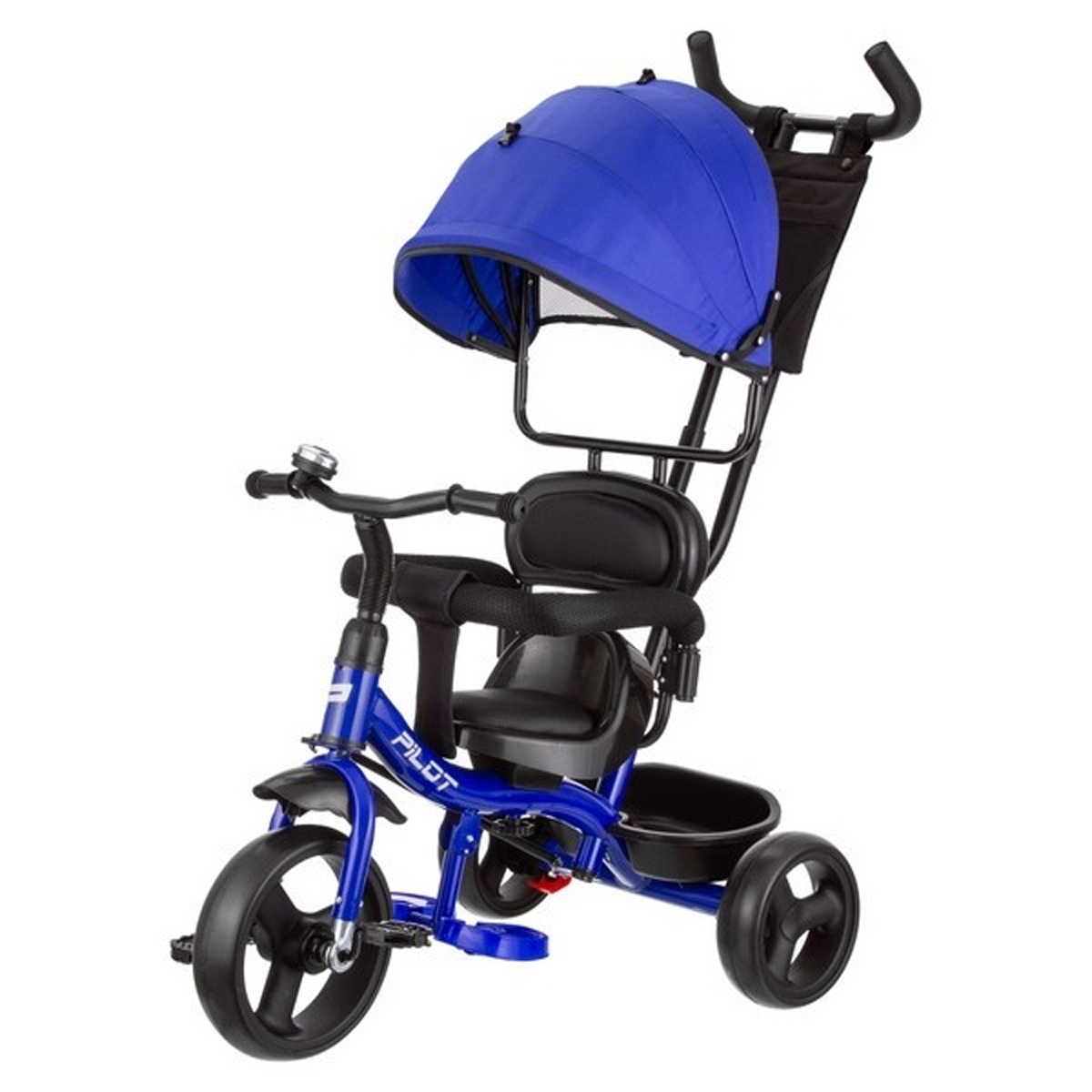 Купить Велосипед коляска трехколесный Pilot PT1B с ручкой управления, поворотное сиденье, синий черный с доставкой по всей России.