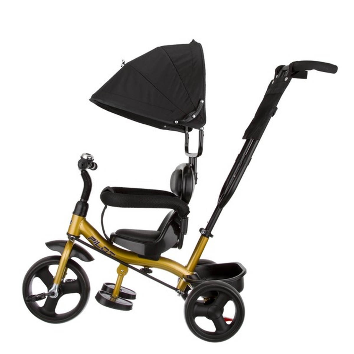 Купить Велосипед коляска трехколесный Pilot PT1GB с ручкой управления, поворотное сиденье, черный золотой с доставкой по всей России.
