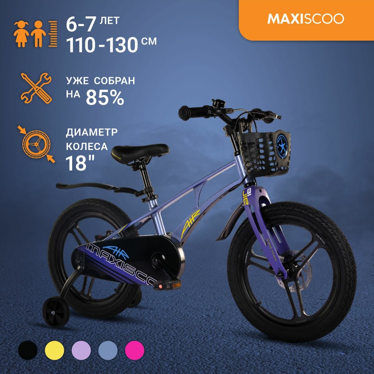 Велосипед детский двухколесный Maxiscoo AIR Pro 18″ (2024): сравнение цен, характеристики, фото, актуальное наличие и цены.