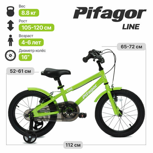 Детский велосипед Pifagor Line на 16-х колесах – яркий, легкий и безопасный велосипед для ребенка на рост от 105 до 120 см.