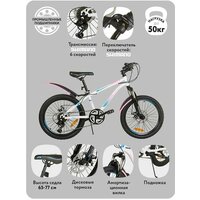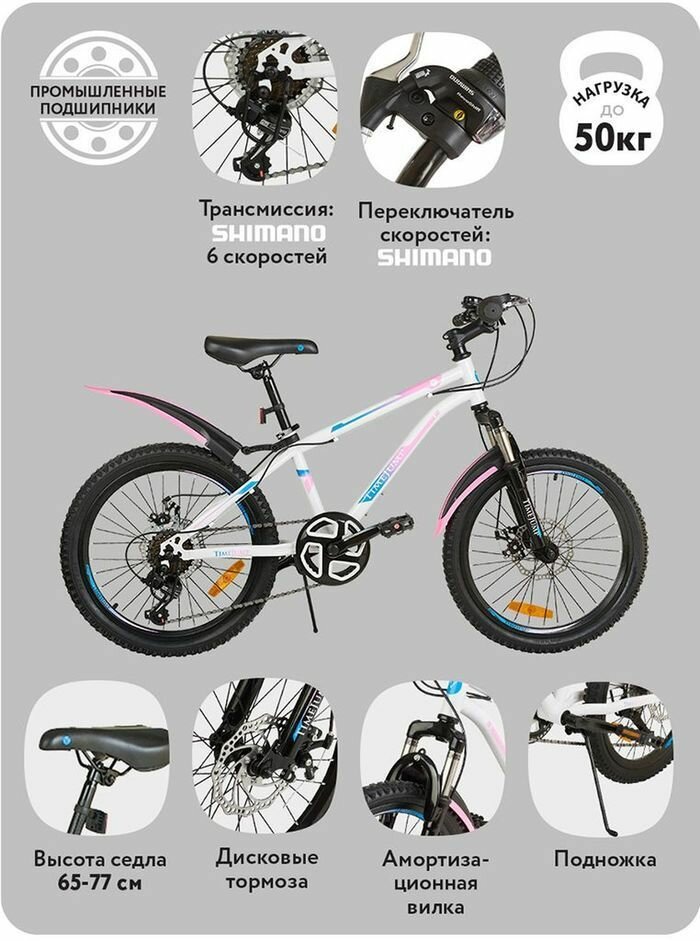 Велосипед подростковый 20 дюймов, 6 скоростной, белый