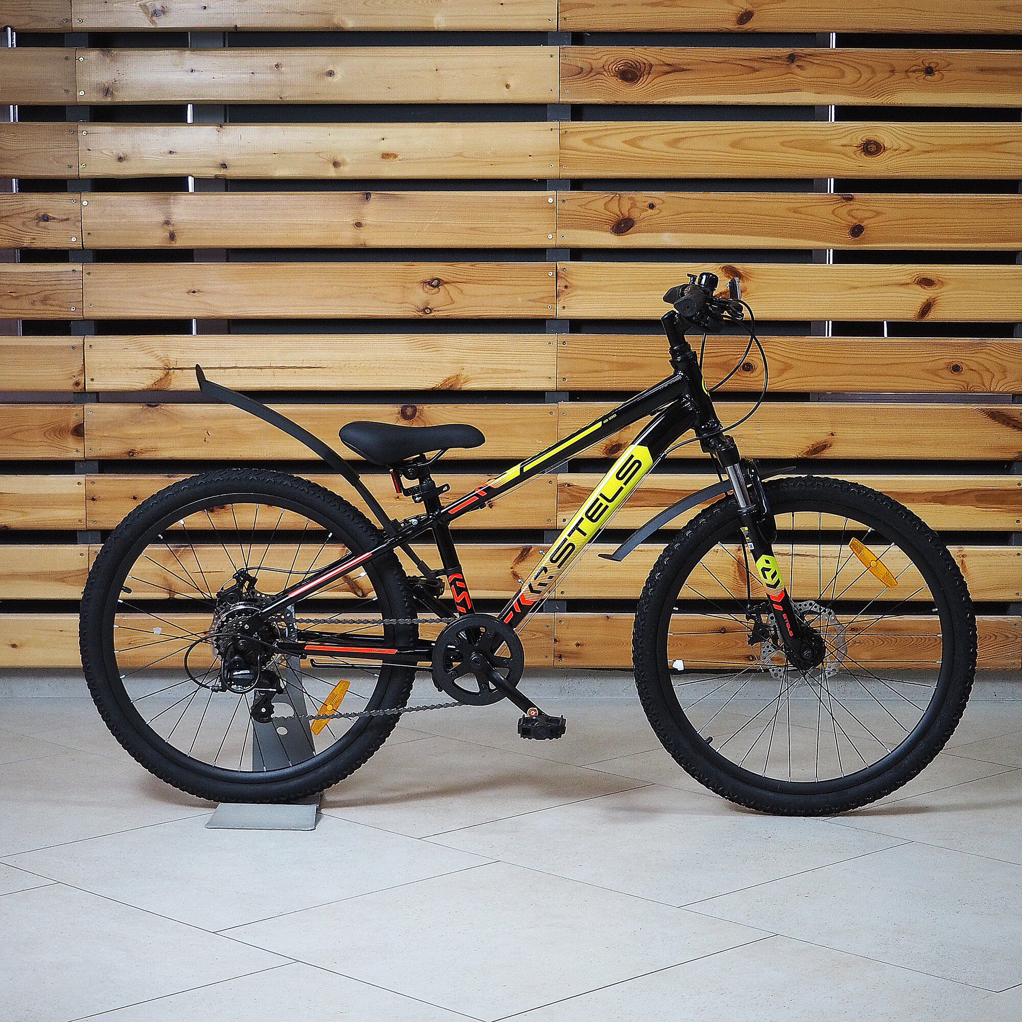 Stels Navigator 400 MD 24” F010 - стильный подростковый горный велосипед для первооткрывателей. Перед вами одна из самых стильных и скоростных моделей маунтинбайка, спроектированного и созданного специально для подростков. Внешний облик велосипеда более брутален по сравнению с обычными городскими моделями для детей и взрослых, а его пластиковые крылья спереди и сзади придают Navigator 400 больше динамичности и спортивности в обводах. Это, несомненно, привлечет внимание всех, кому нравится спорт, свобода передвижения и новизна ощущений. Основные элементы и компоновка По своей компоновке 400-й “Навигатор” не отличается от многих других моделей горных байков, рассчитанных как на подростков, так и на взрослых. Наша модель по своей компоновке относится к типу “хардтейл”, в котором ключевую роль играют рама и рулевой узел с передней вилкой. Хардтейлы - популярное техническое решение в сфере маунтинбайков, причем опять же независимо от возрастной категории. Конфигурацию и параметры любого - подросткового или взрослого - хардтейла определяют его основные компоненты: рама и передняя вилка (которая в хардтейле обычно выступает в качестве амортизационной системы). В модели 400 Navigator MD 24 используется следующая схема: стальная 12-дюймовая рама и амортизированная вилка со встроенным пружинно-эластомерным механизмом и ходом в 50 мм. Компоновка “хардтейл” доказала свою надежность и рациональность для горных велосипедов начального уровня, к которым можно смело отнести и подростковый 400-й “Навигатор”. Конечно, знатоки могут сразу сказать, что стальная рама тяжелее алюминиевой или композитной, однако в пользу такого выбора говорит несколько факторов. Во-первых, сталь марки Hi-Ten, задействованная в этой модели, легче и долговечнее старых марок. Во-вторых, она гибче в обработке (что позволяет сделать более интересную конфигурацию), а также лучше приспособлена к дорожным нагрузкам. Наконец, в-третьих, она дешевле других материалов. Поэтому для байка подобного класса и уровня решение было выбрано оптимальное. Навесное оборудование и трансмиссия В плане комплектации трансмиссии и другого навесного оборудования модель Stels Navigator похожа на другие горные байки, ведь выбор компонентов и их характеристики определяются типом машины, задачами, которые она призвана решать и стилем катания. В этом смысле 400-й “Навигатор” вряд ли способен удивить чем-то оригинальным, ведь этот байк начального уровня, предназначен для подростков и для стиля катания “кросс-кантри”. Разного рода опыты экстремального управления в этом случае просто невозможны.