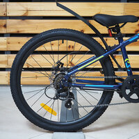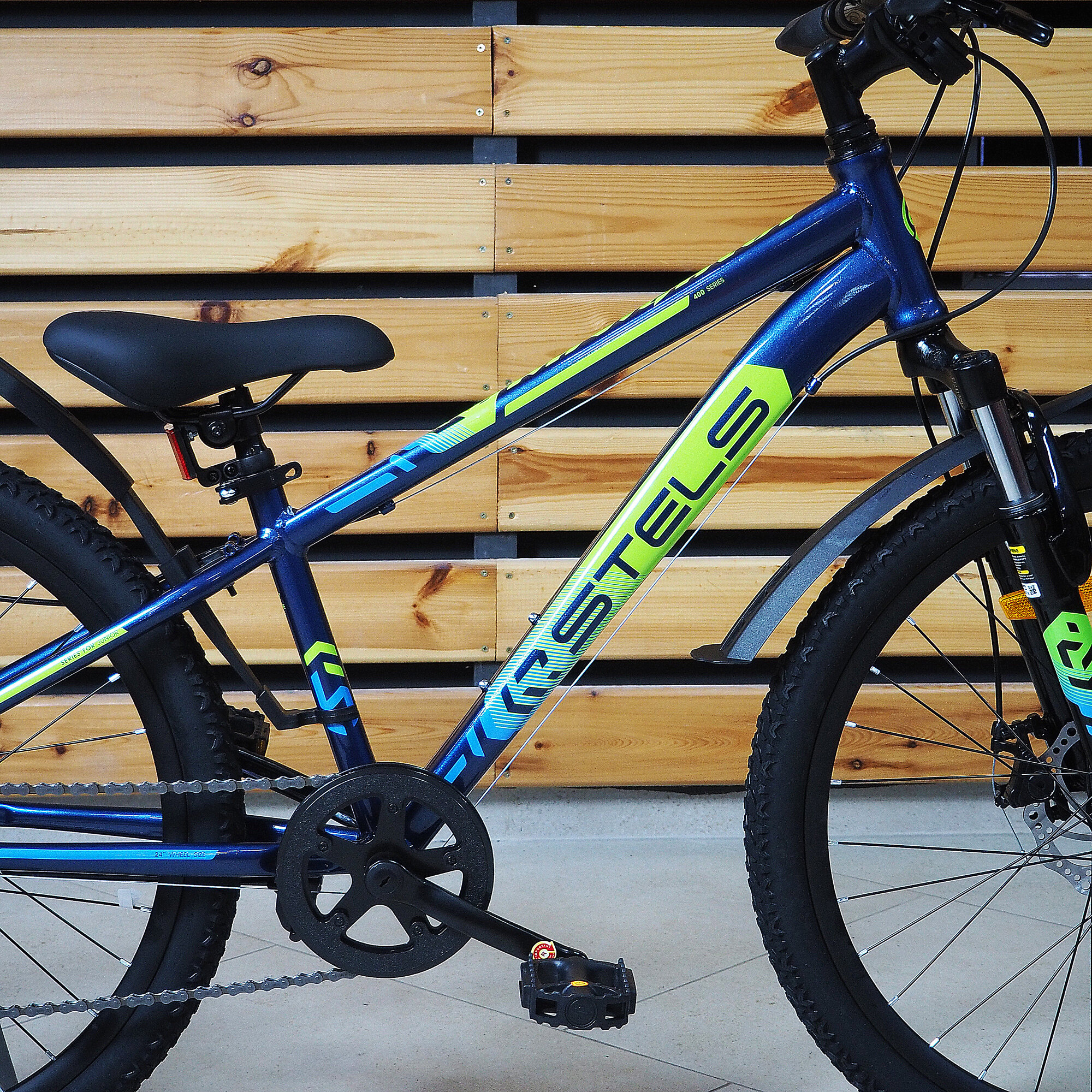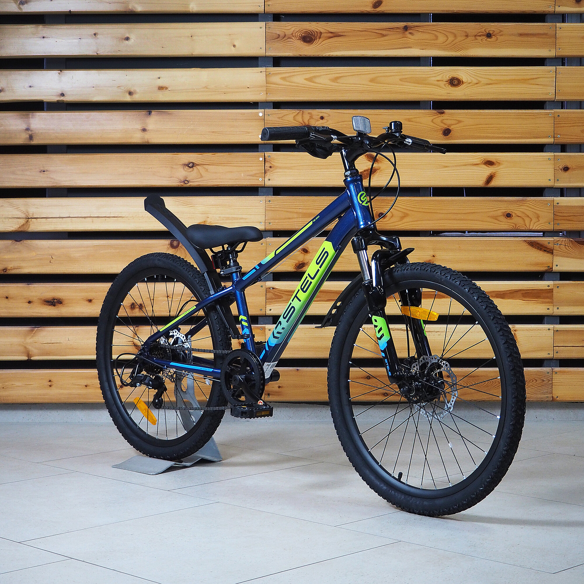 Stels Navigator 400 MD 24” F010 - стильный подростковый горный велосипед для первооткрывателей. Перед вами одна из самых стильных и скоростных моделей маунтинбайка, спроектированного и созданного специально для подростков. Внешний облик велосипеда более брутален по сравнению с обычными городскими моделями для детей и взрослых, а его пластиковые крылья спереди и сзади придают Navigator 400 больше динамичности и спортивности в обводах. Это, несомненно, привлечет внимание всех, кому нравится спорт, свобода передвижения и новизна ощущений. Основные элементы и компоновка По своей компоновке 400-й “Навигатор” не отличается от многих других моделей горных байков, рассчитанных как на подростков, так и на взрослых. Наша модель по своей компоновке относится к типу “хардтейл”, в котором ключевую роль играют рама и рулевой узел с передней вилкой. Хардтейлы - популярное техническое решение в сфере маунтинбайков, причем опять же независимо от возрастной категории. Конфигурацию и параметры любого - подросткового или взрослого - хардтейла определяют его основные компоненты: рама и передняя вилка (которая в хардтейле обычно выступает в качестве амортизационной системы). В модели 400 Navigator MD 24 используется следующая схема: стальная 12-дюймовая рама и амортизированная вилка со встроенным пружинно-эластомерным механизмом и ходом в 50 мм. Компоновка “хардтейл” доказала свою надежность и рациональность для горных велосипедов начального уровня, к которым можно смело отнести и подростковый 400-й “Навигатор”. Конечно, знатоки могут сразу сказать, что стальная рама тяжелее алюминиевой или композитной, однако в пользу такого выбора говорит несколько факторов. Во-первых, сталь марки Hi-Ten, задействованная в этой модели, легче и долговечнее старых марок. Во-вторых, она гибче в обработке (что позволяет сделать более интересную конфигурацию), а также лучше приспособлена к дорожным нагрузкам. Наконец, в-третьих, она дешевле других материалов. Поэтому для байка подобного класса и уровня решение было выбрано оптимальное. Навесное оборудование и трансмиссия В плане комплектации трансмиссии и другого навесного оборудования модель Stels Navigator похожа на другие горные байки, ведь выбор компонентов и их характеристики определяются типом машины, задачами, которые она призвана решать и стилем катания. В этом смысле 400-й “Навигатор” вряд ли способен удивить чем-то оригинальным, ведь этот байк начального уровня, предназначен для подростков и для стиля катания “кросс-кантри”. Разного рода опыты экстремального управления в этом случае просто невозможны.