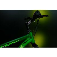 Алюминиевая рама велосипеда обеспечивает его легкость и прочность, а втулки на промах гарантируют плавность и стабильность хода. Дисковые механические тормоза обеспечивают безопасность при катании.