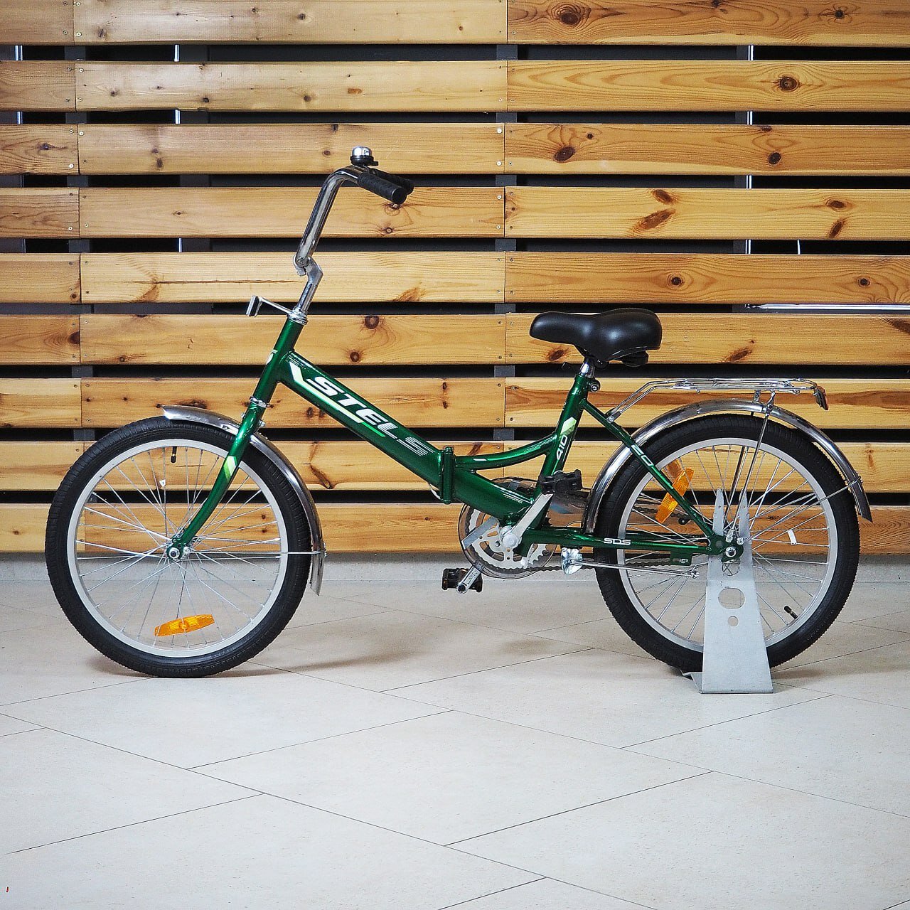 Складной велосипед Stels Pilot 410 – городской велосипед со складывающийся рамой, который подойдет как для поездок на близкие расстояния, так для продолжительных велопрогулок по дорогам с хорошим покрытием. Байк включает в себя стальную раму высокой прочности, высокий руль, ножной тормоз, комфортное седло и стандартный стальной багажник. Благодаря складному устройству велосипед занимает мало места, что позволяет разместить его дома на хранение или с легкостью перевозить не только в багажнике автомобиля, но и в общественном транспорте. Как говорилось выше, рама выполнена из прочной стали и представляет собой толстую основную трубу, задние перья и вертикальную трубу для подседельного штыря. На раме расположен разборный механизм, позволяющий быстро складывать или раскладывать велосипед. Стоит отметить, что из достаточно тяжелой рамы заметно увеличивается и общий вес модели, составляющий почти 15 кг. Однако увеличенная масса транспортного средства – недостаток всех складных байков в виду особенности конструкции. Pilot 410 - самая продаваемая модель городского велосипеда от компании Stels. Велосипед построен по всем знакомой концепции советских велосипедов - комфортная, прямая посадка, складная рама, небольшие колеса и аксессуары для комфортного катания в городских условиях. Также у этой модели есть одно из самых главных преимуществ - стоимость, за счет которой она и является одной из самой популярной в России! Это городская модель велосипеда, поэтому на ней установлена простая жесткая вилка, а 20-дюймовые колеса оснащены покрышками с неглубоким протектором. Такие шины обеспечивают отличный накат на асфальтированной дороге, но не отличаются проходимостью в условиях бездорожья. Для обеспечения плавного или резкого торможения в зависимости от условий используется ножной тормоз. Сброс скорости осуществляется при вращении педалей в обратном направлении. Для путешествий при правильной посадке райдера с ровной спиной используется высокий руль с мягкими грипсами. Комфортное седло с пружинами выполняет функцию демпфера при преодолении проблемных участков дорог. Для перевоза багажа модель оснащена стальным багажником с зажимом, а защита цепи и длинные крылья дают райдеру возможность передвигаться на велосипеде в повседневной одежде. Велосипед удобно складывается. Такая модель прекрасно подойдет для транспортировки в багажнике автомобиля, а при необходимости байк легко взять с собой в метро или автобус. Значимые особенности данной модели: Складная рама из стали, замок складного механизма на эксцентрике, длинная передняя труба и наклоненная рулевая колонка для стабильного поведения при городском катании 20" колеса на двойных, алюминиевых ободах Оптимальная ширина резины с городским рисунком протектора Классический ножной тормоз Регулируемая по высоте рулевая колонка, регулировка угла наклона руля Мягкое и подпружиненное седло Сопутствующие аксессуары - полноразмерные крылья, защита цепи, багажник, подножка, звонок Широкая зона установки высоты руля и седла подойдет как для взрослых, так и для подростков. Комфортный допуск по росту будет от 140 до 185 сантиметров, рама поддерживает нагрузку до 90 кг. Велосипед ориентирован на городское использование и полностью готов к этому.