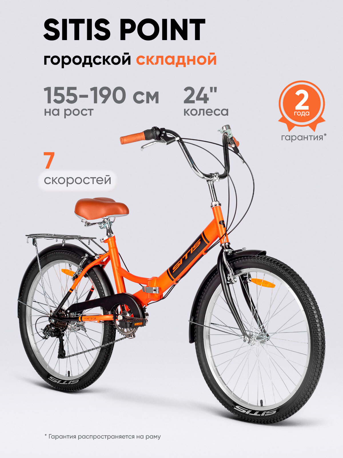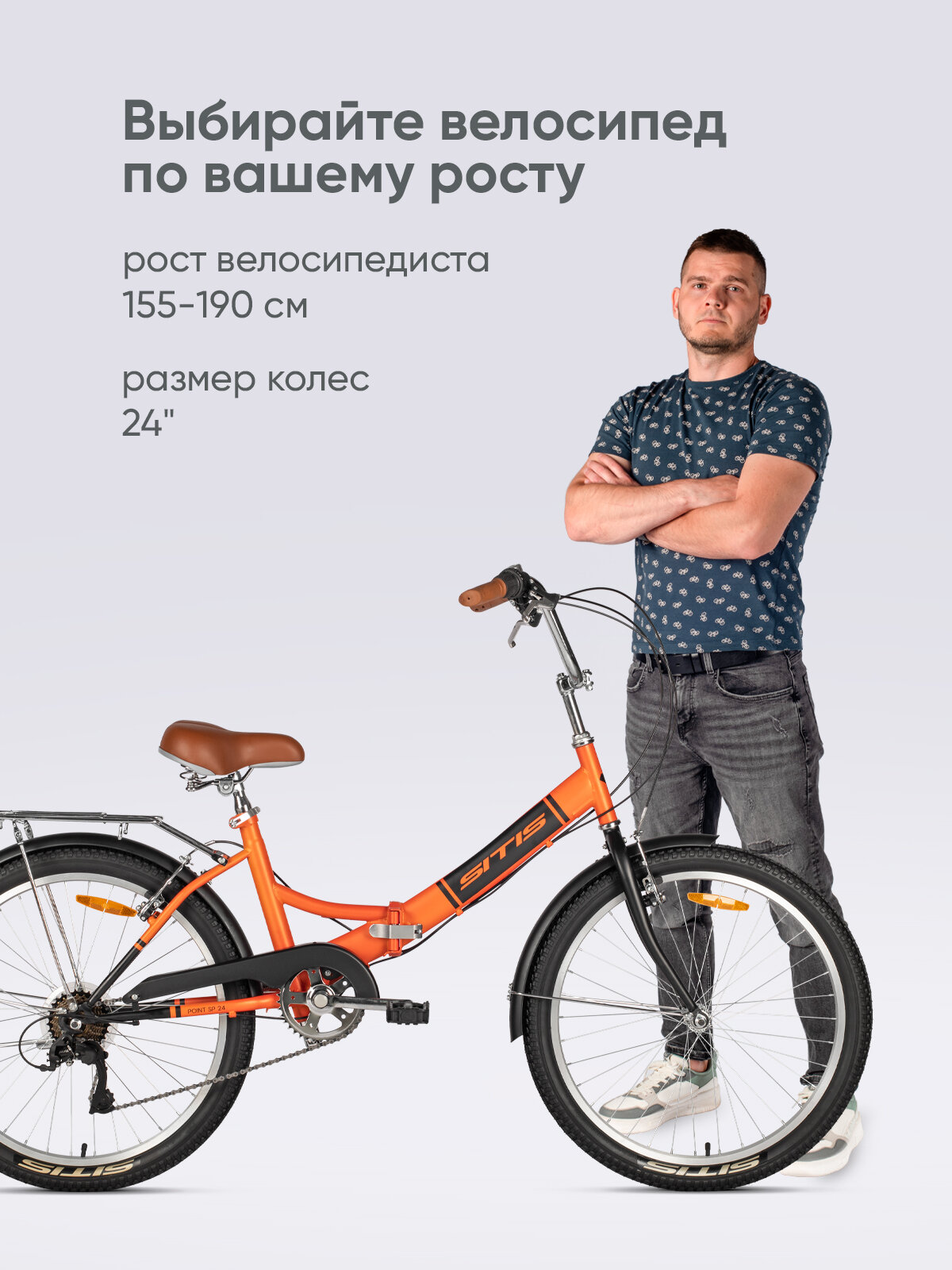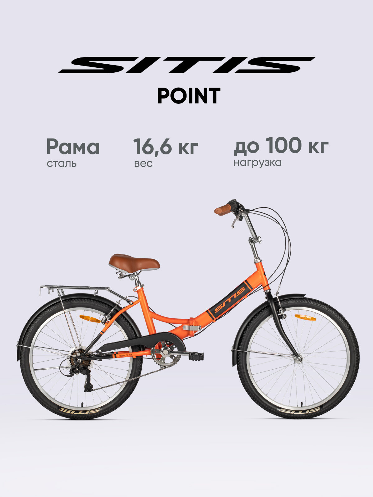 Купить Велосипед складной SITIS POINT 24 7S» (2025) Orange-Black/оранжевый-чёрный, для взрослых на рост 155-190 см, стальная рама, V-brake тормоза, жёсткая вилка, 7 скоростей с доставкой по всей России.