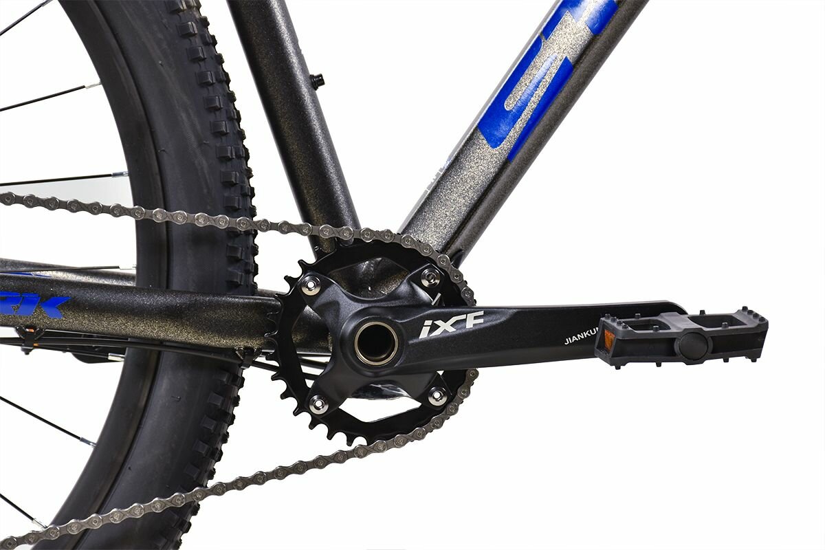 Велосипед имеет алюминиевую раму с двойным баттингом для увеличения прочности при малом весе. Внутренняя проводка тросов предотвратит их повреждение и добавит раме больше эстетики. Воздушная вилка с регулировкой отскока и блокировкой хода позволит не только чувствовать себя комфортно при езде по буграм трассы, но и эффективно работает при технических спусках и подъемах, облегчая их прохождение. Вилка и рама с на осях надежно удерживают колеса и улучшают управляемость.