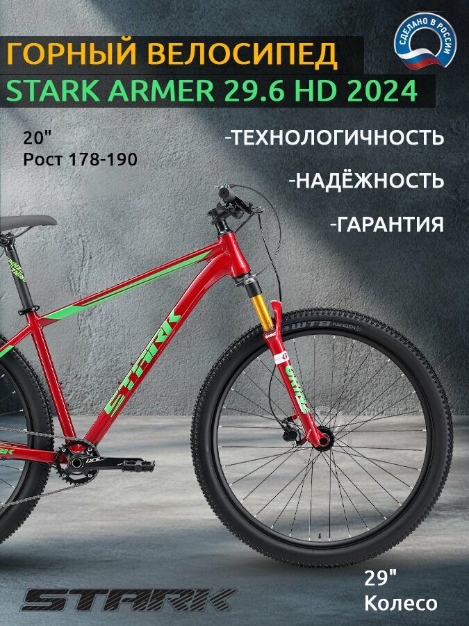 Купить Велосипед Stark Armer 29.6 HD (2024) / размер: 20″ / цвет: бордовый/зеленый / скоростей: 10 / рама: Алюминий (Alloy) с доставкой по всей России.