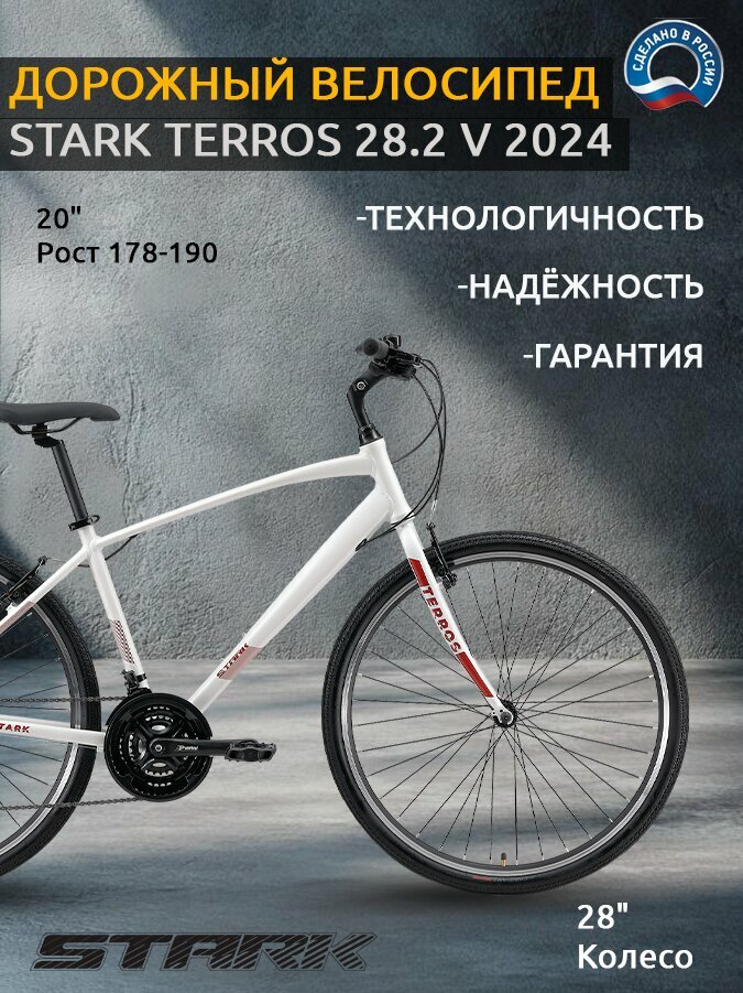 Велосипед Stark Terros 28.2 V (2024) / размер: 20″ / цвет: белый матовый/красный, серый / скоростей: 24 / рама: Алюминий (Alloy): сравнение цен, характеристики, фото, актуальное наличие и цены.