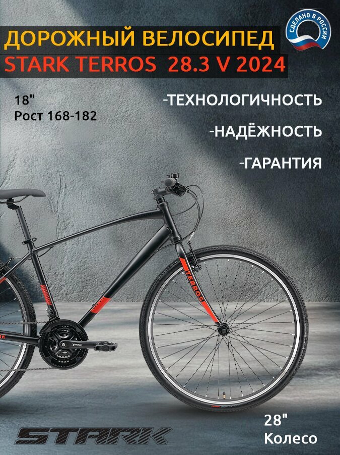 Купить Велосипед Stark Terros 28.3 V (2024) / размер: 18″ / цвет: черный матовый металлик/оранжевый, черный / скоростей: 24 / рама: Алюминий (Alloy) с доставкой по всей России.