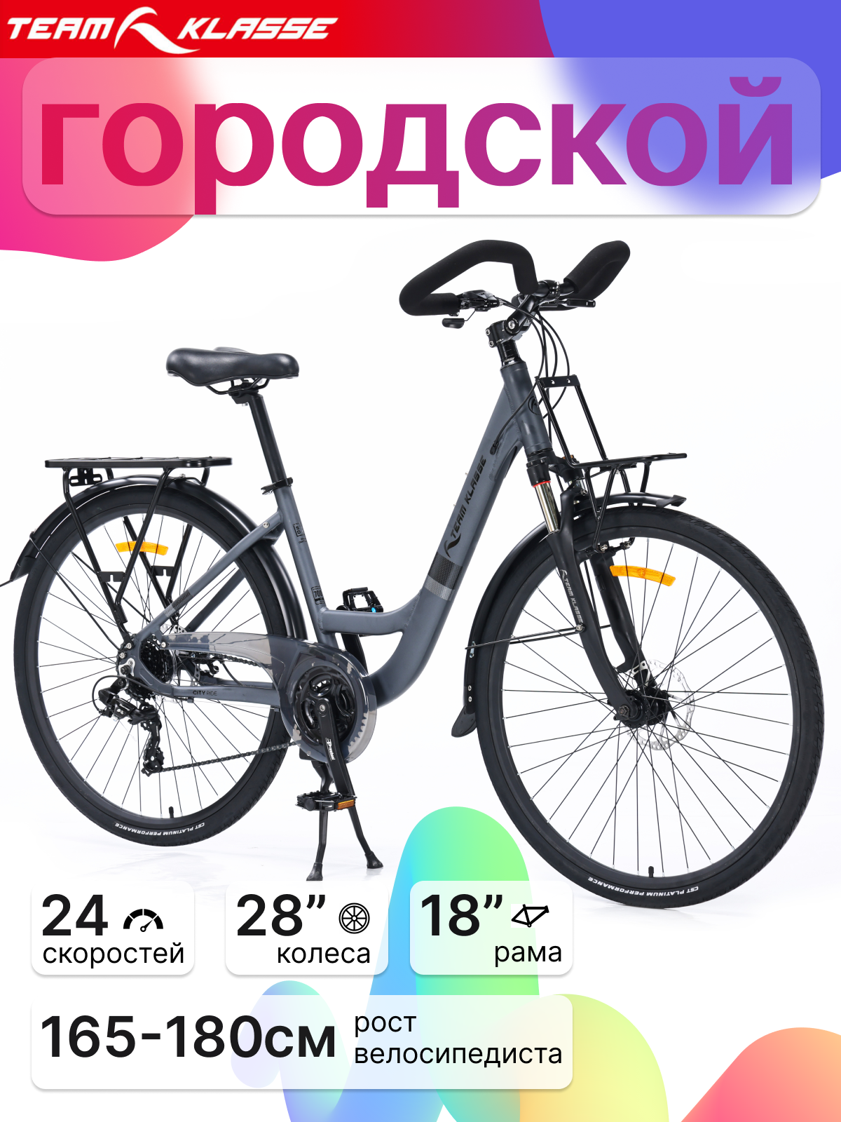Велосипед Team Klasse XD-MC-1-C, городской, 24 скоростей, диаметр колес 28″, рама 18″, тормоз Shimano, серый: сравнение цен, характеристики, фото, актуальное наличие и цены.