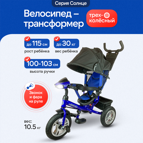 Велосипед-трансформер 3в1 трёхколесный с ручкой «Солнце» с музыкальным модулем, нагрузка до 30 кг, синий: сравнение цен, характеристики, фото, актуальное наличие и цены.