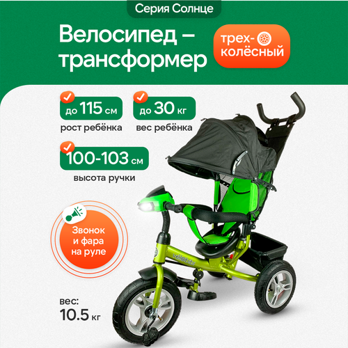 Велосипед-трансформер 3в1 трёхколесный с ручкой «Солнце» нагрузка до 30 кг, для детей от 1+, цвет зеленый: сравнение цен, характеристики, фото, актуальное наличие и цены.