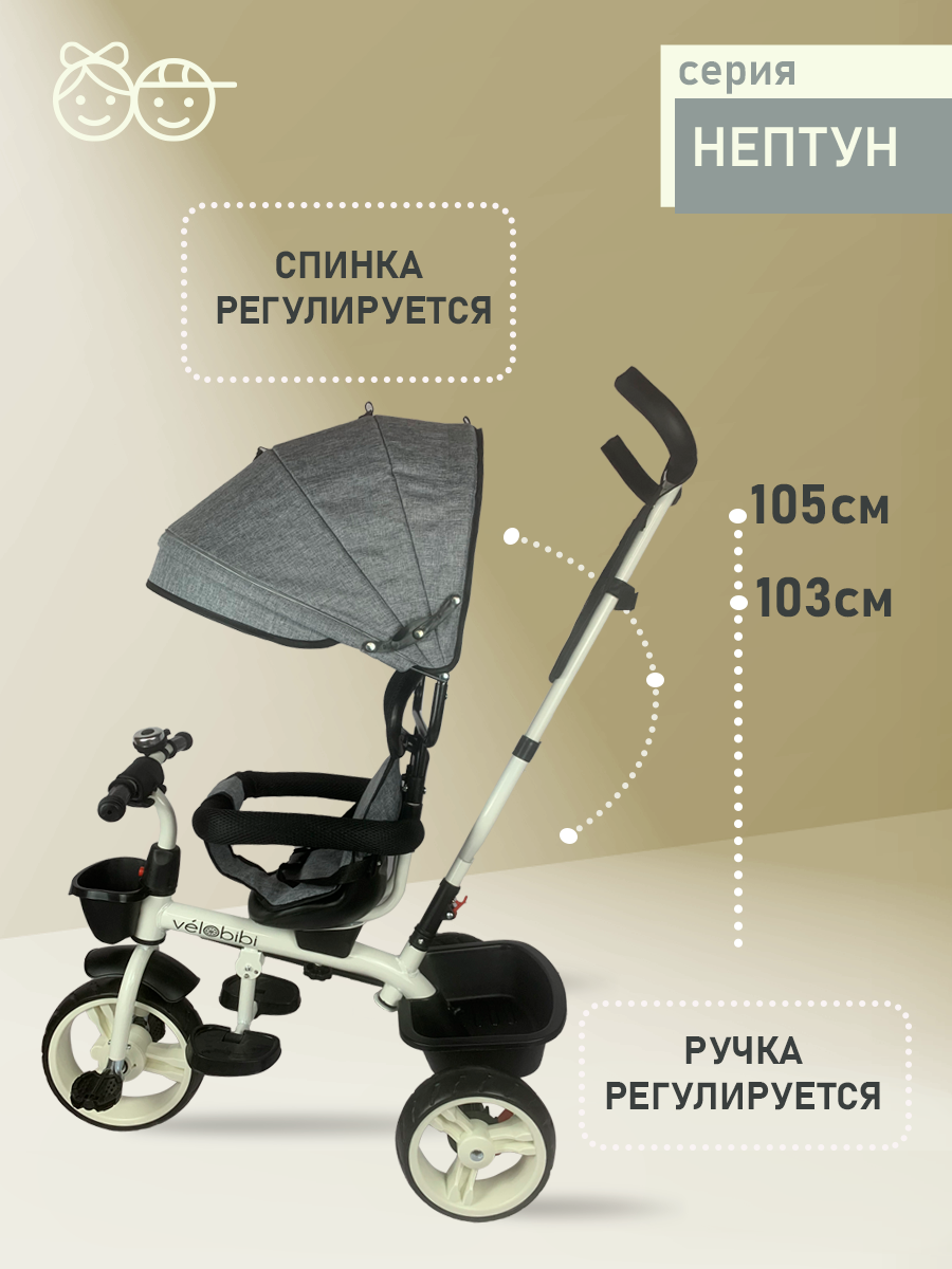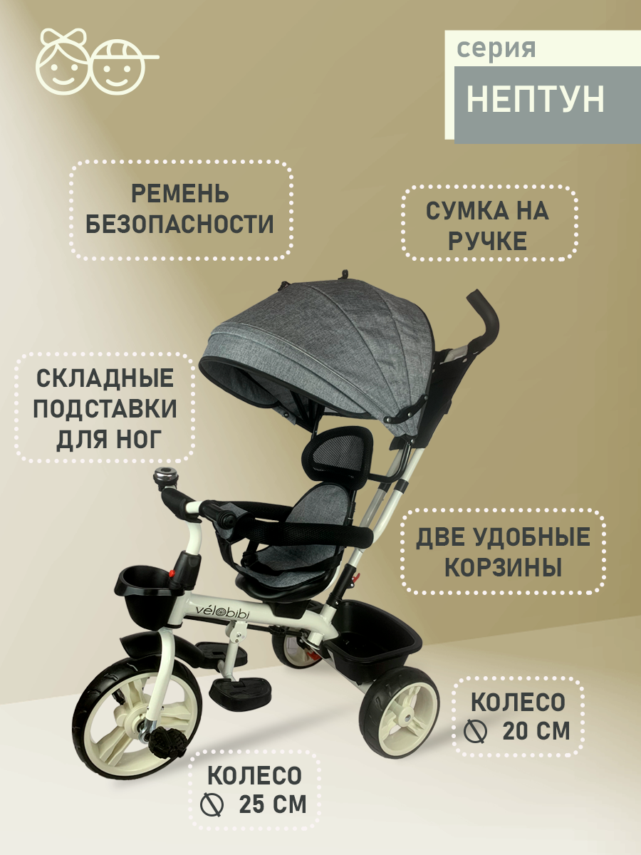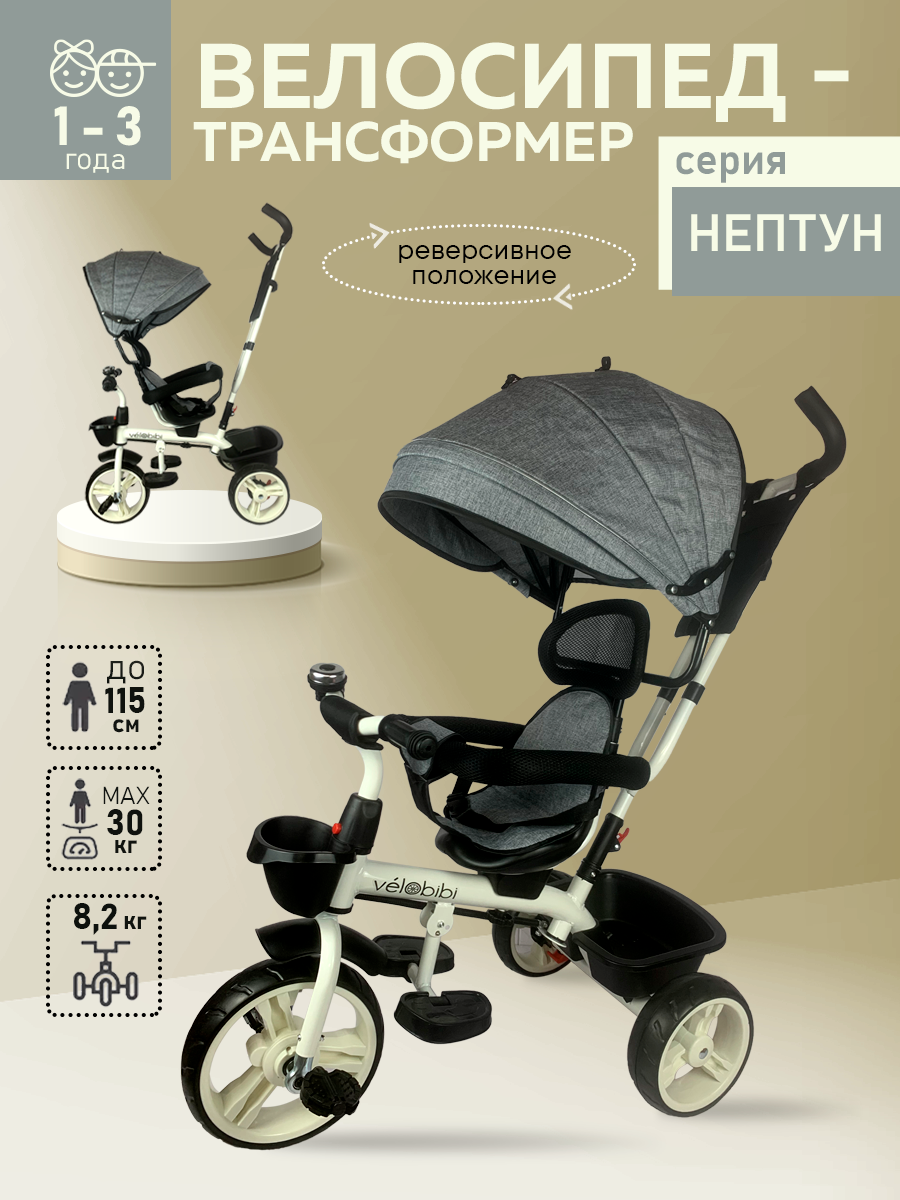 Велосипед-трансформер «Нептун» трёхколесный с ручкой, нагрузка до 30 кг, для детей от 1+, серый: сравнение цен, характеристики, фото, актуальное наличие и цены.