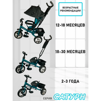 Велосипед-трансформер «Сатурн» трёхколесный с ручкой, нагрузка до 30 кг, для детей от 1+, бирюзовый: сравнение цен, характеристики, фото, актуальное наличие и цены.
