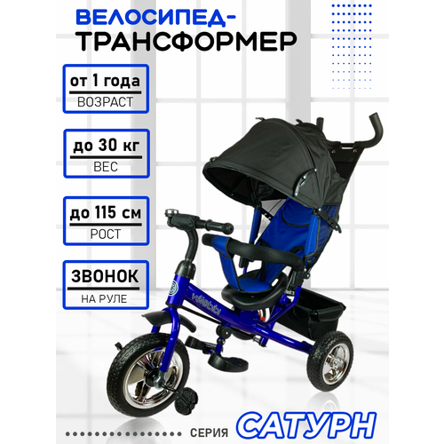 Велосипед-трансформер «Сатурн» трёхколесный с ручкой, нагрузка до 30 кг, для детей от 1+, синий: сравнение цен, характеристики, фото, актуальное наличие и цены.