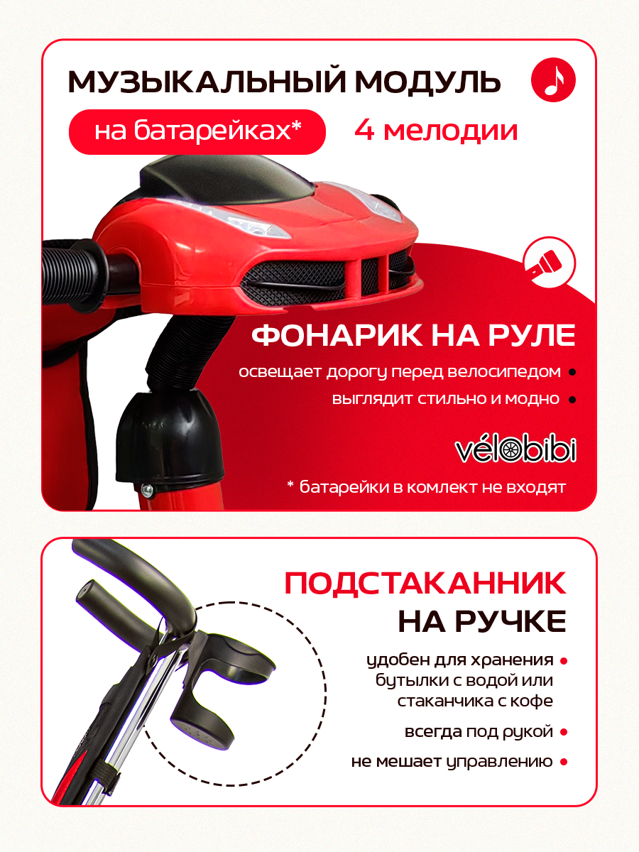 Купить Велосипед-трансформер трёхколесный с ручкой ДИНАМИК (колеса надувные 10″/8″, музыкальный модуль), красный с доставкой по всей России.