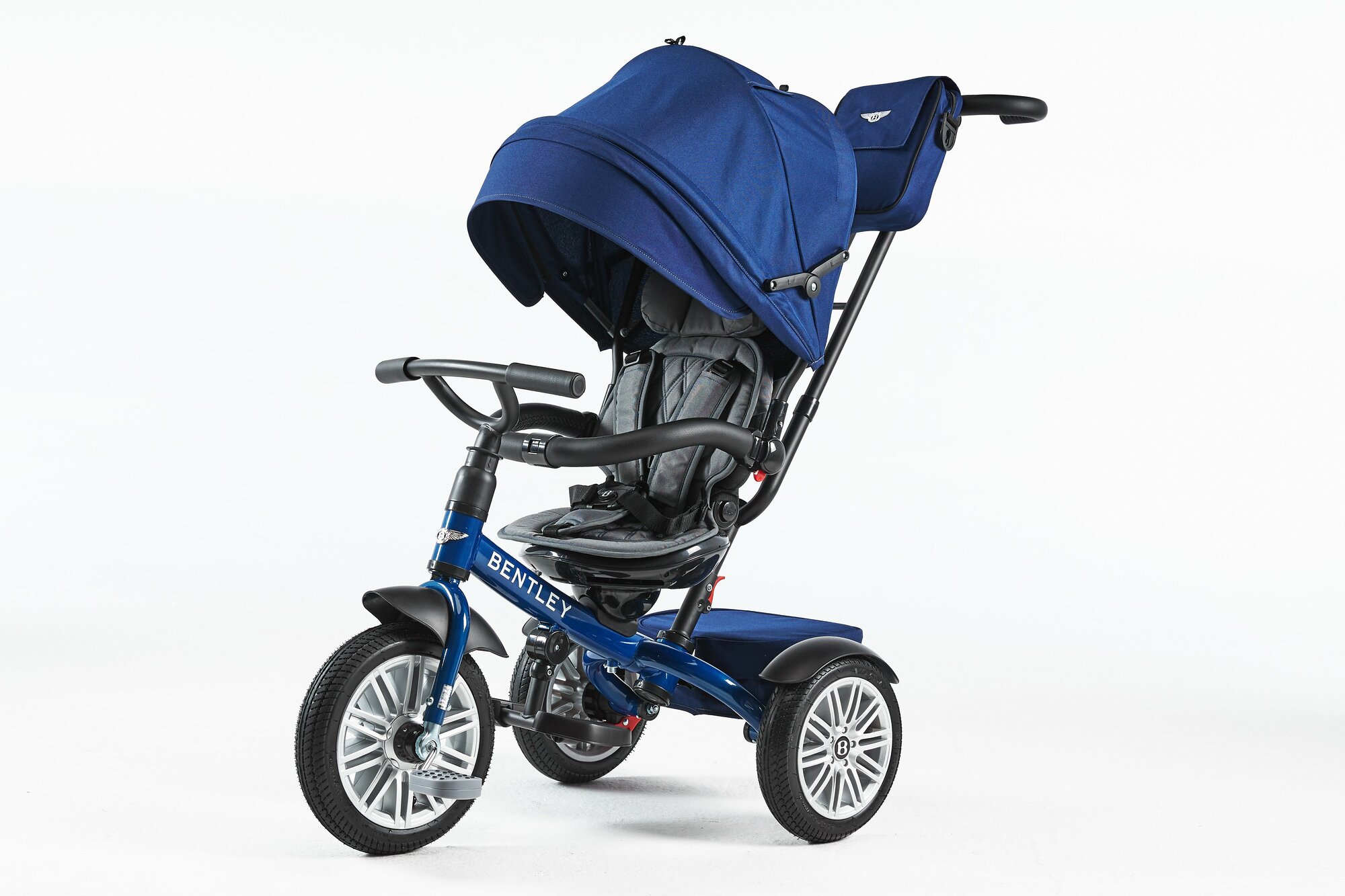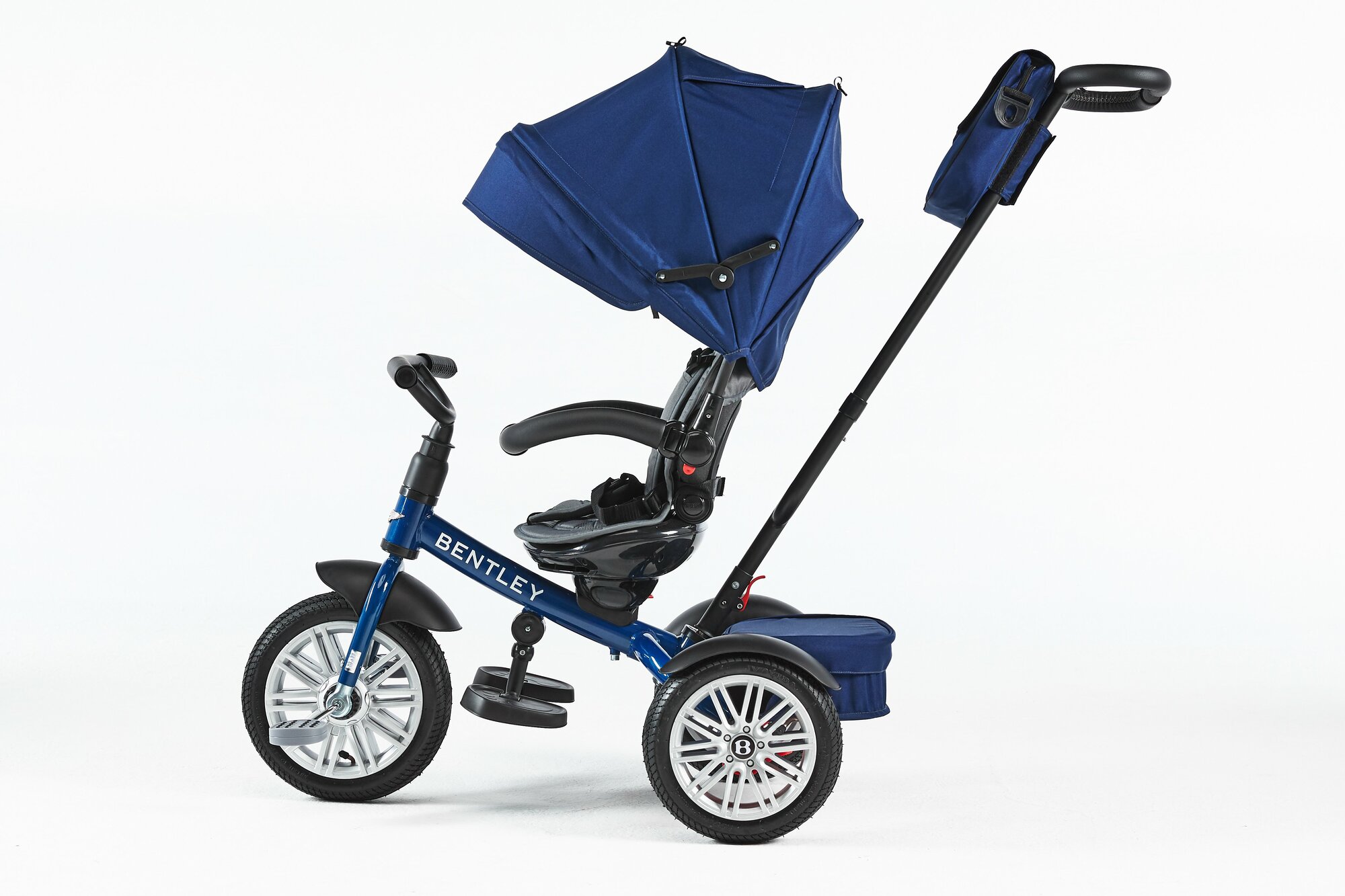 Купить Велосипед трехколесный Bentley BN1B детский с поворотным сиденьем ручкой управления капюшоном и корзиной, синий с доставкой по всей России.