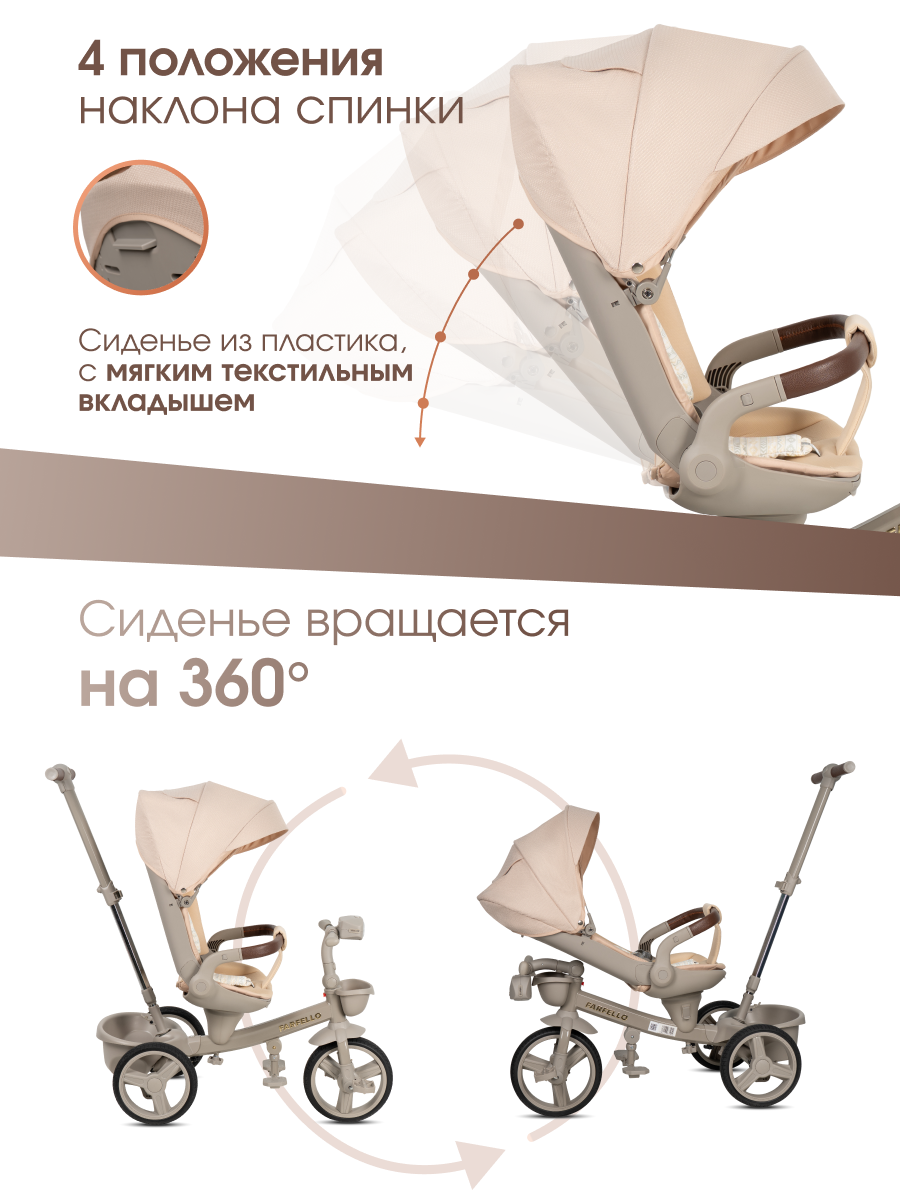 Родительская ручка выполнена из экокожи, управляет передним колесом