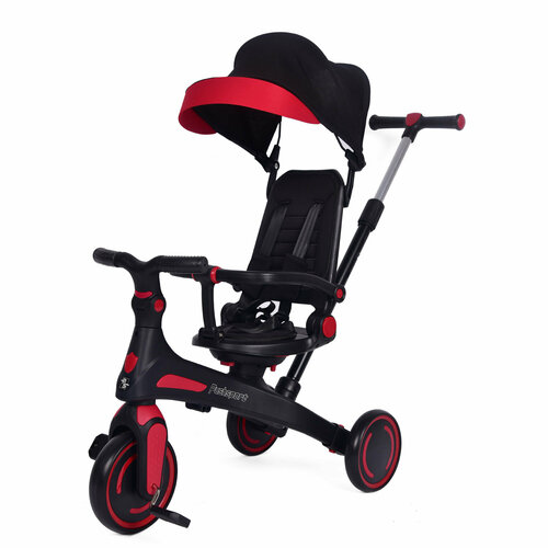 Велосипед трехколесный детский Pushsport, с родительской ручкой, цвет, красно-черный: сравнение цен, характеристики, фото, актуальное наличие и цены.