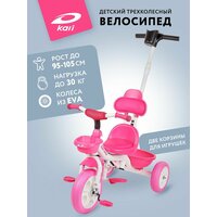 Купить Велосипед трехколесный kari детский с ручкой, белый-розовый, цвет белый, розовый с доставкой по всей России.