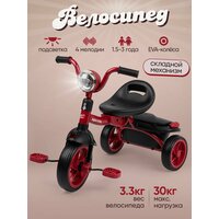 Купить Велосипед трехколесный детский свет/музыка, складной, SAFARI PROFF, черно-красный с доставкой по всей России.
