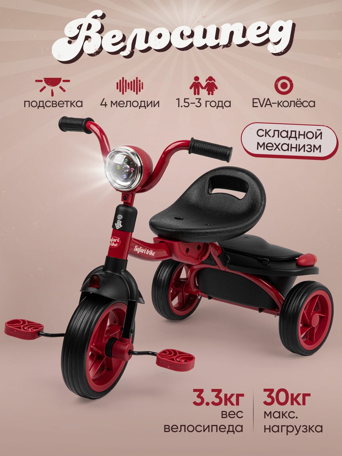 Велосипед трехколесный детский свет/музыка, складной, SAFARI PROFF, черно-красный: сравнение цен, характеристики, фото, актуальное наличие и цены.