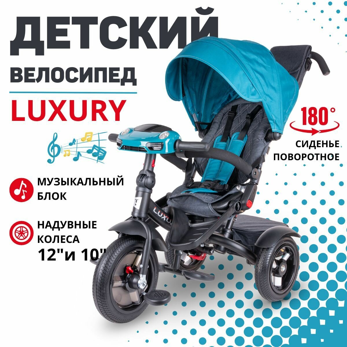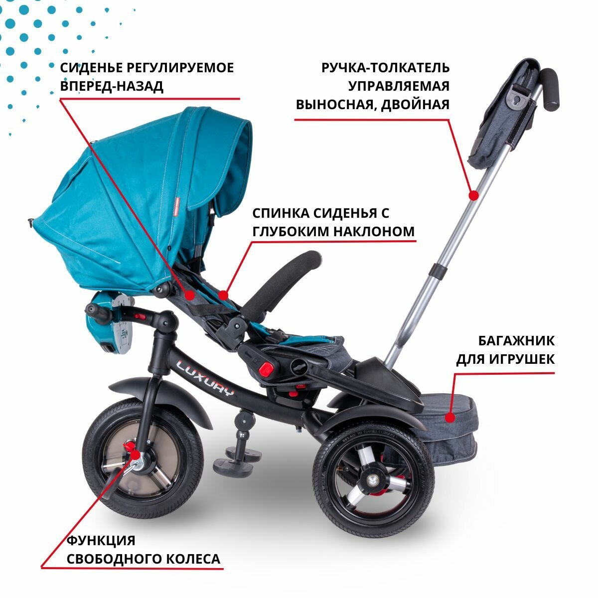 Купить Велосипед трехколесный детский Tech Team LUXURY с поворотным сиденьем, с ручкой для родителей, велосипед-коляска, складная крыша, 3 угла наклона спинки, надувные колеса 12 и 10 дюймов с доставкой по всей России.