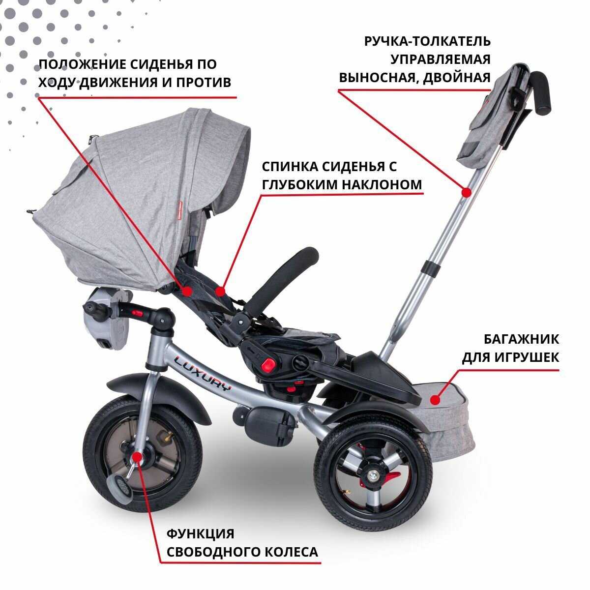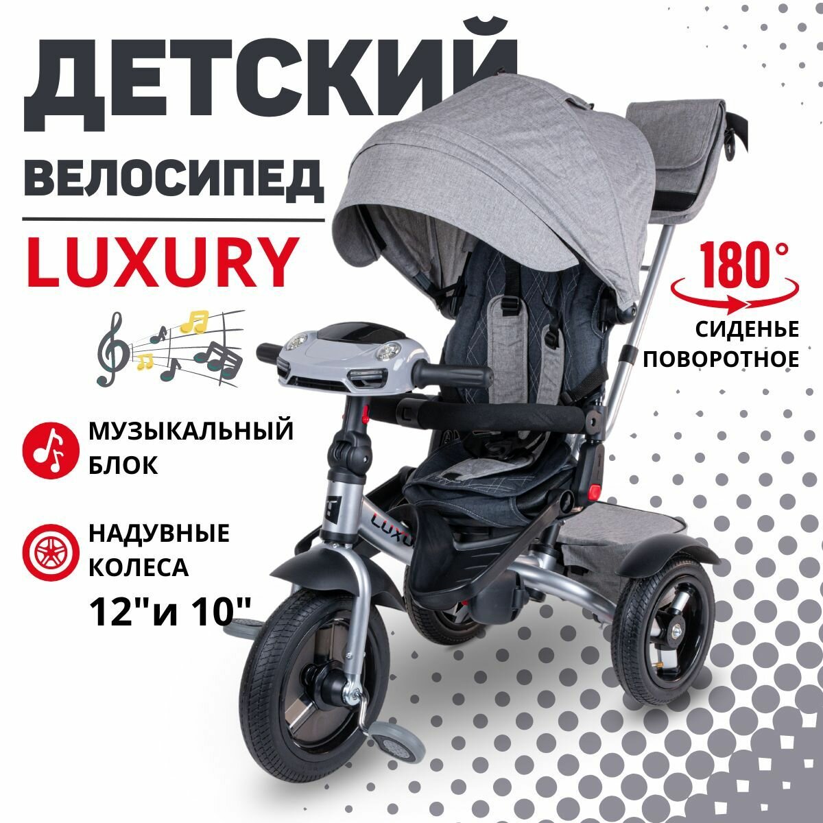 Купить Велосипед трехколесный детский Tech Team LUXURY с поворотным сиденьем, с ручкой для родителей, велосипед-коляска, складная крыша, 3 угла наклона спинки, надувные колеса 12 и 10 дюймов с доставкой по всей России.