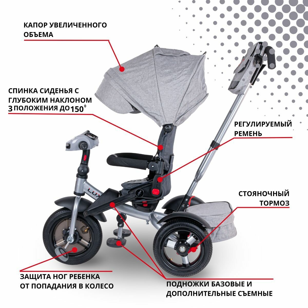 Велосипед трехколесный детский Tech Team LUXURY с поворотным сиденьем, с ручкой для родителей, велосипед-коляска, складная крыша, 3 угла наклона спинки, надувные колеса 12 и 10 дюймов: сравнение цен, характеристики, фото, актуальное наличие и цены.