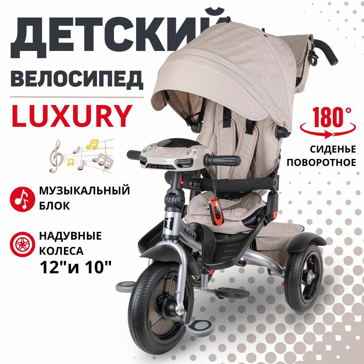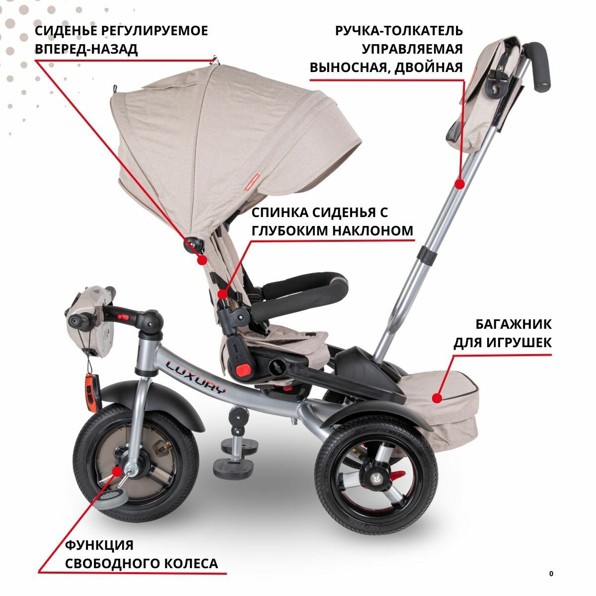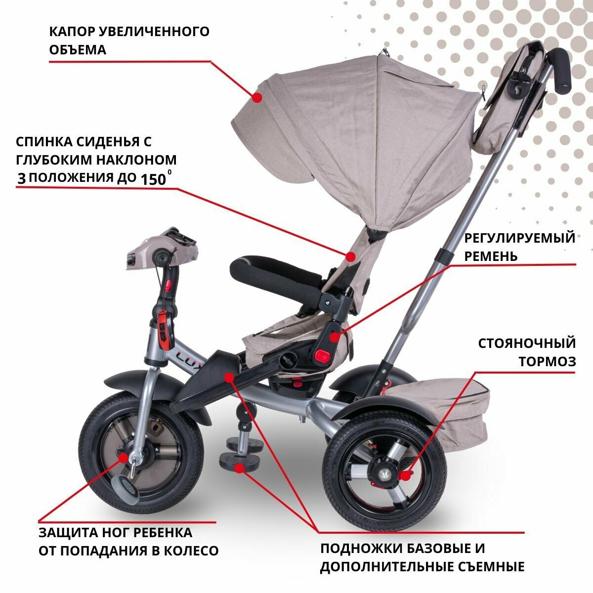 Купить Велосипед трехколесный детский Tech Team LUXURY с поворотным сиденьем, с ручкой для родителей, велосипед-коляска, складная крыша, 3 угла наклона спинки, надувные колеса 12 и 10 дюймов с доставкой по всей России.