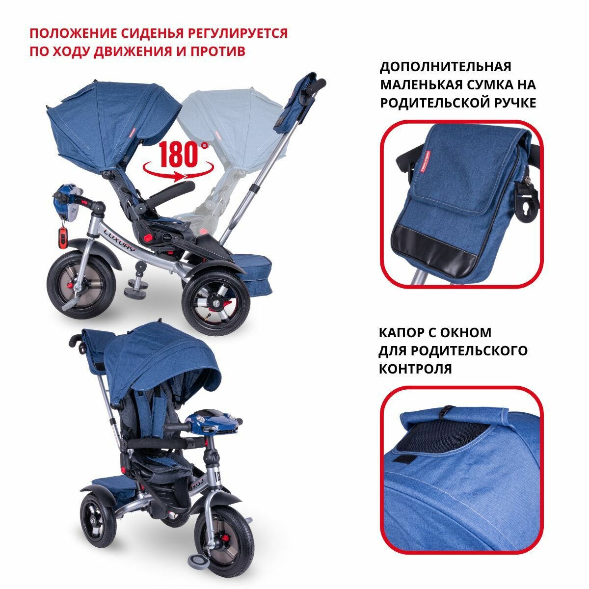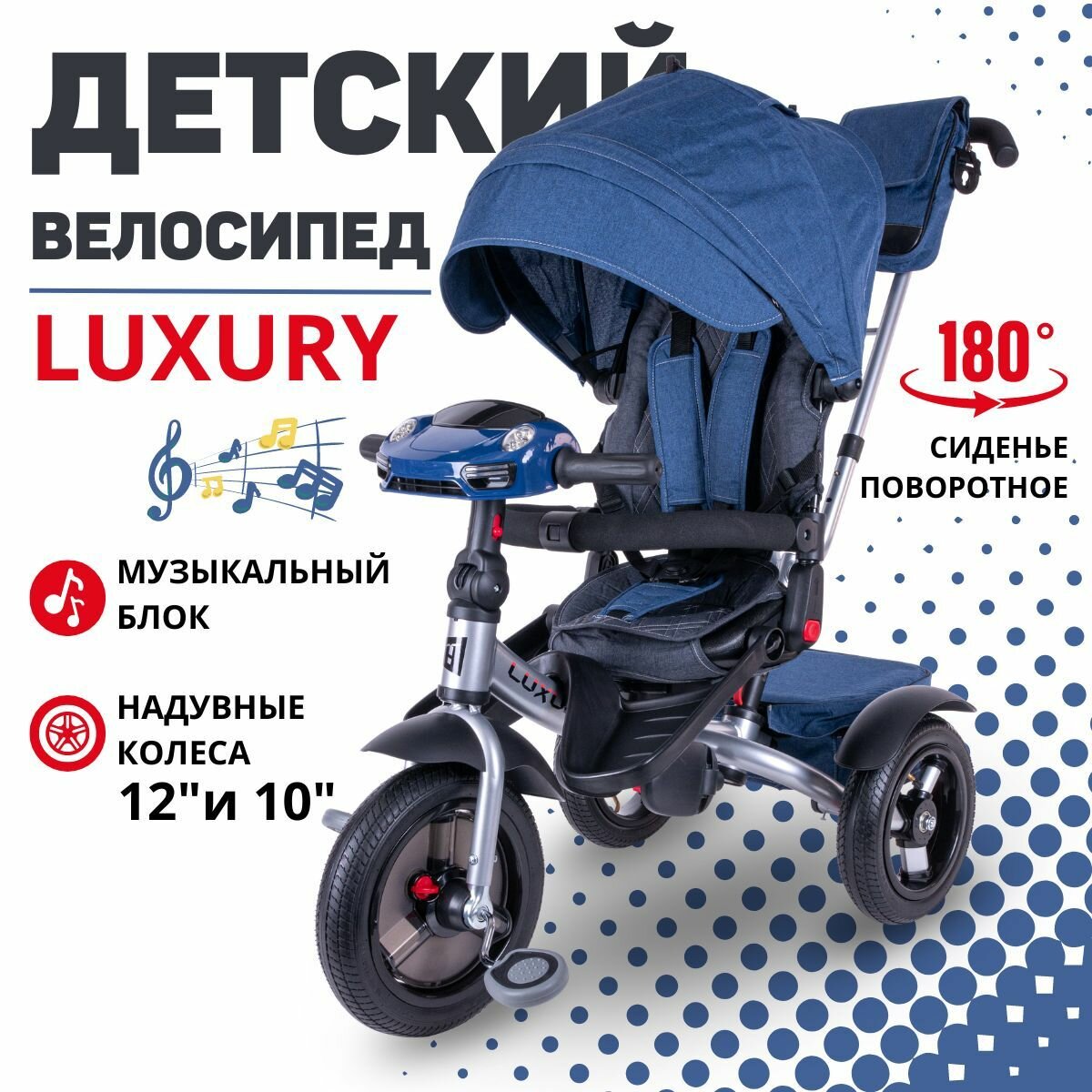 Купить Велосипед трехколесный детский Tech Team LUXURY с поворотным сиденьем, с ручкой для родителей, велосипед-коляска, складная крыша, 3 угла наклона спинки, надувные колеса 12 и 10 дюймов с доставкой по всей России.