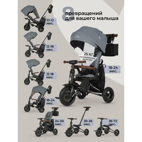 • Целых 8 вариаций использования! • Алюминиевая рама, которая сочетает в себе легкость и прочность; • Регулируемая родительская ручка подстроится под рост мамы и папы; • Реверсивное сиденье: установить его можно как по ходу движения, так и против хода; • Функция отключения и включения контроля руля; • Регулируемая спинка и мягкое сиденье гарантируют уют и комфорт даже в длительных поездках; • 2 вида подножек: для маленьких пассажиров и постарше; • Cъемный регулируемый капюшон с дополнительной защитой от солнечных лучей; • Дышащая сетчатая спинка с мягкими подголовником и боковинами; • Удобный подстаканник и подставка для смартфона на родительской ручке • сумка- мешок для хранения и сумка для мелких вещей в комплекте; • Пятиточечные ремни безопасности и защитный раздвижной бампер для обеспечения максимальной защиты во время поездок; • Компактное сложение для удобного хранения и транспортировки; • Максимальная нагрузка: 25 кг