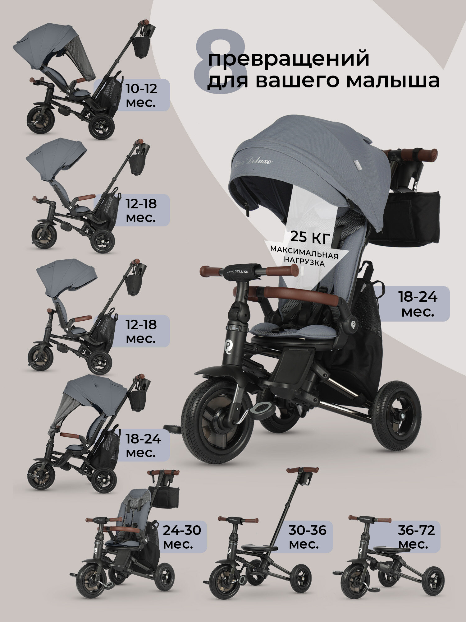 Велосипед QPlay Nova Deluxe 8в1 — идеальный выбор для активных родителей! Представляем вам многофункциональный велосипед QPlay Nova Deluxe 8в1, который станет надежным спутником для ваших прогулок с малышом! Этот уникальный велосипед сочетает в себе стильный дизайн, высокое качество и множество функций, что делает его идеальным решением для детей от 10 месяцев до 6 лет.
