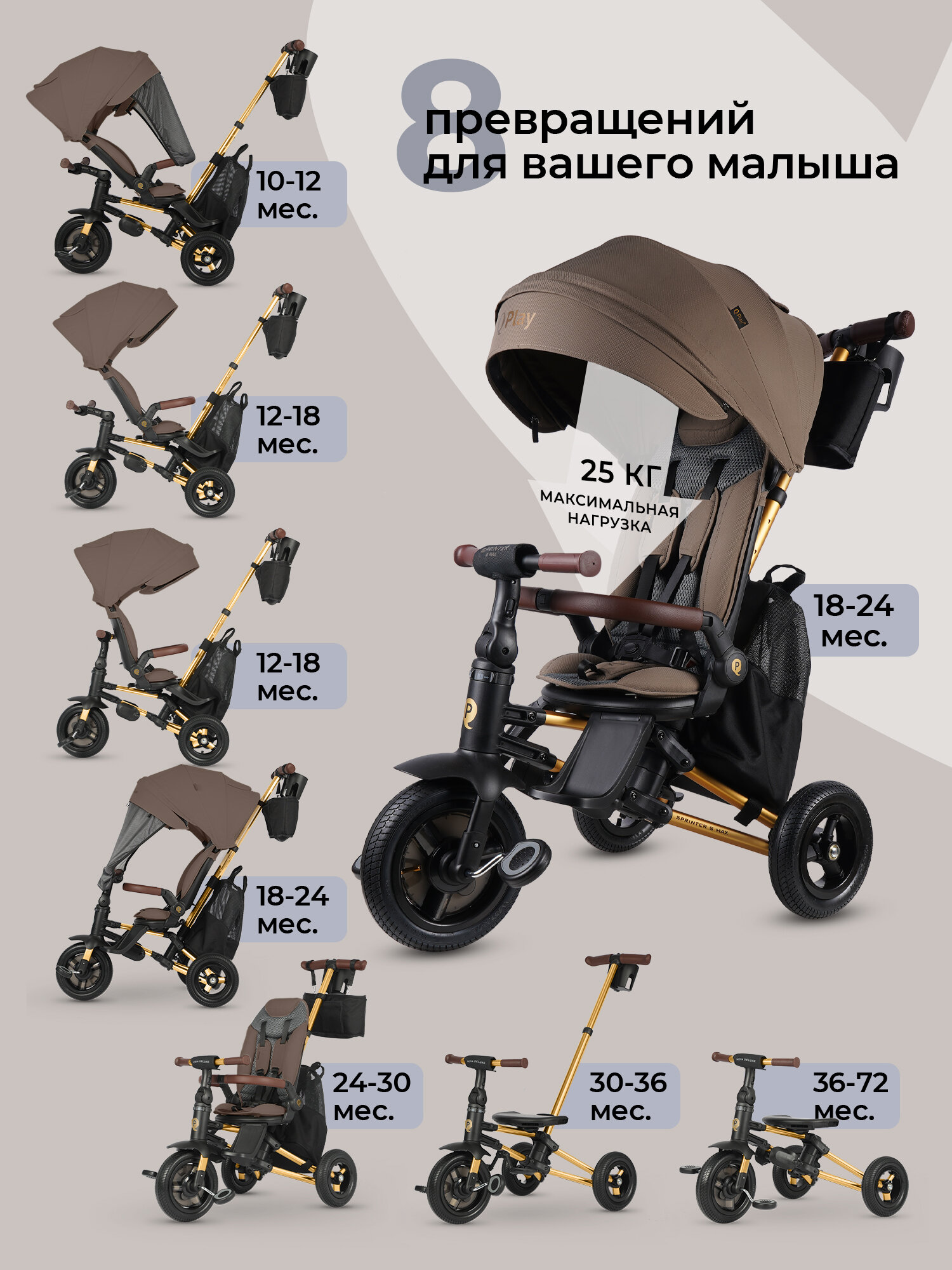 Купить Велосипед трехколесный Qplay S702 SPRINTER S MAX Brown (Lux/Gold) с доставкой по всей России. Велосипед трехколесный Qplay S702 SPRINTER S MAX Brown (Lux/Gold): сравнение цен, характеристики, фото, актуальное наличие и цены.