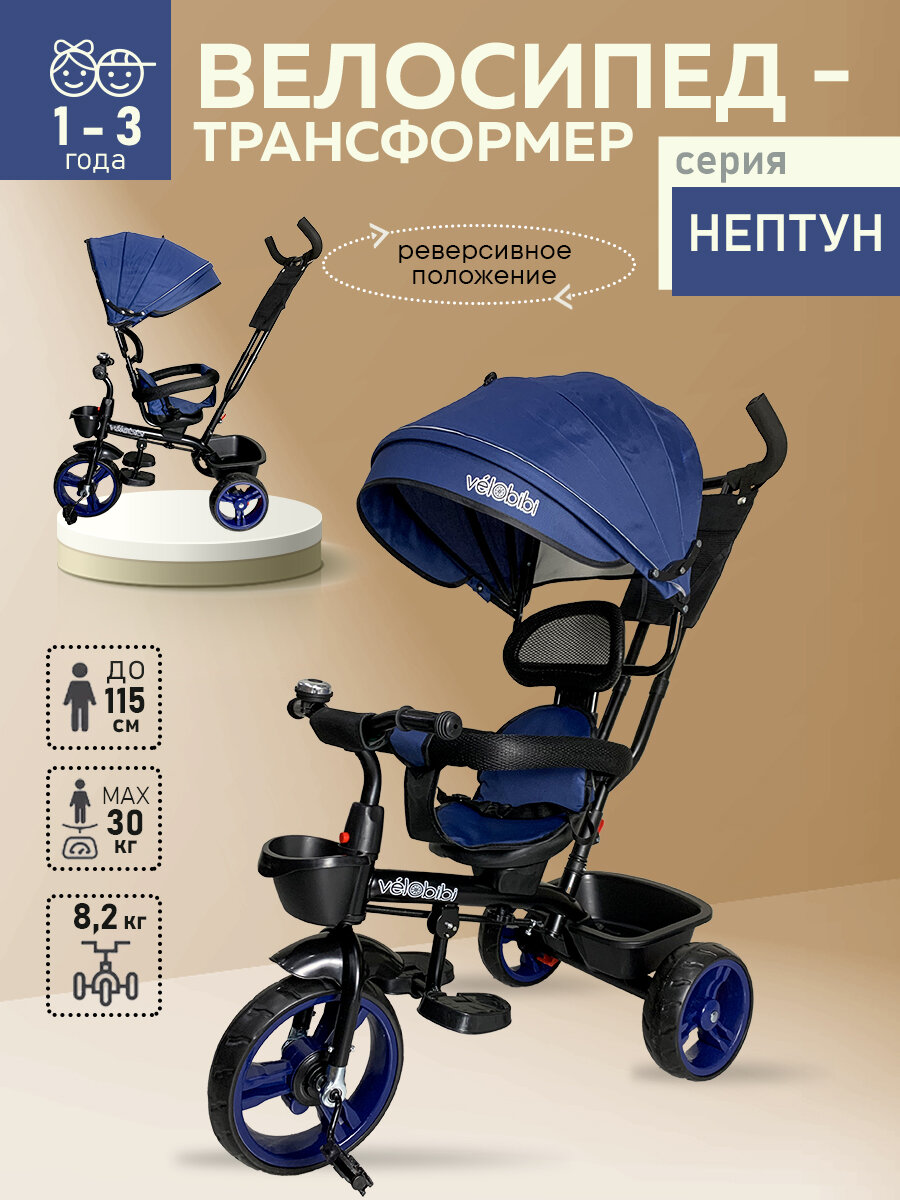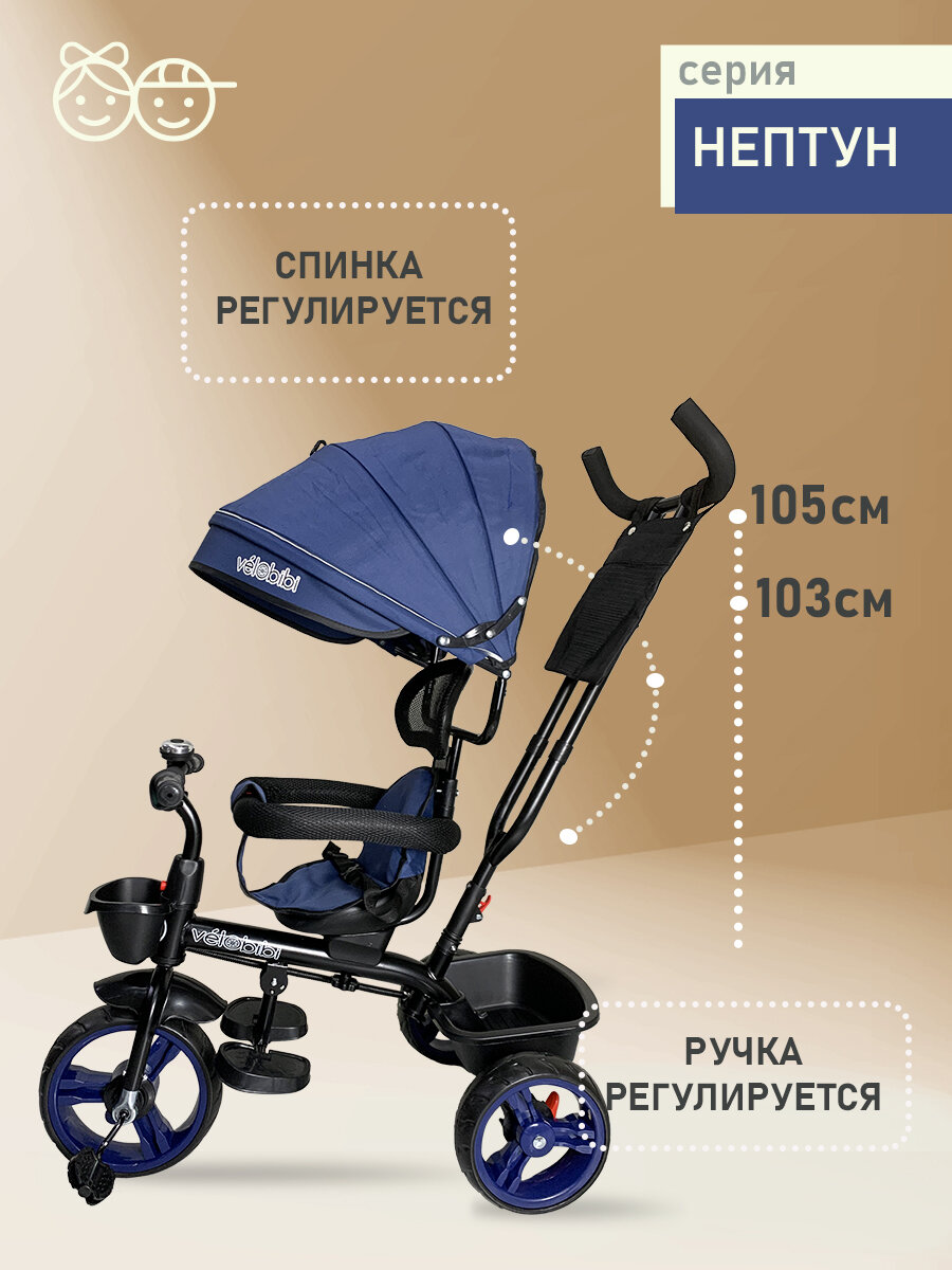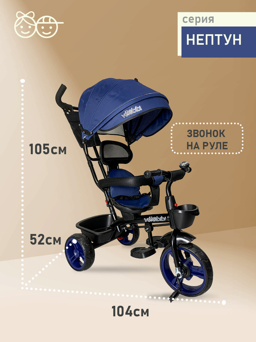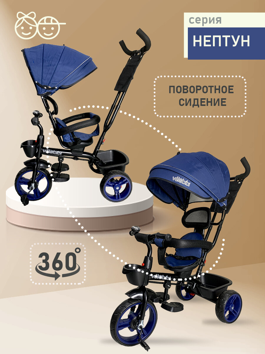 Велосипед трёхколесный серия «нептун» поворотное сиденье, ручка для родителей, нагрузка до 30 кг, синий: сравнение цен, характеристики, фото, актуальное наличие и цены.