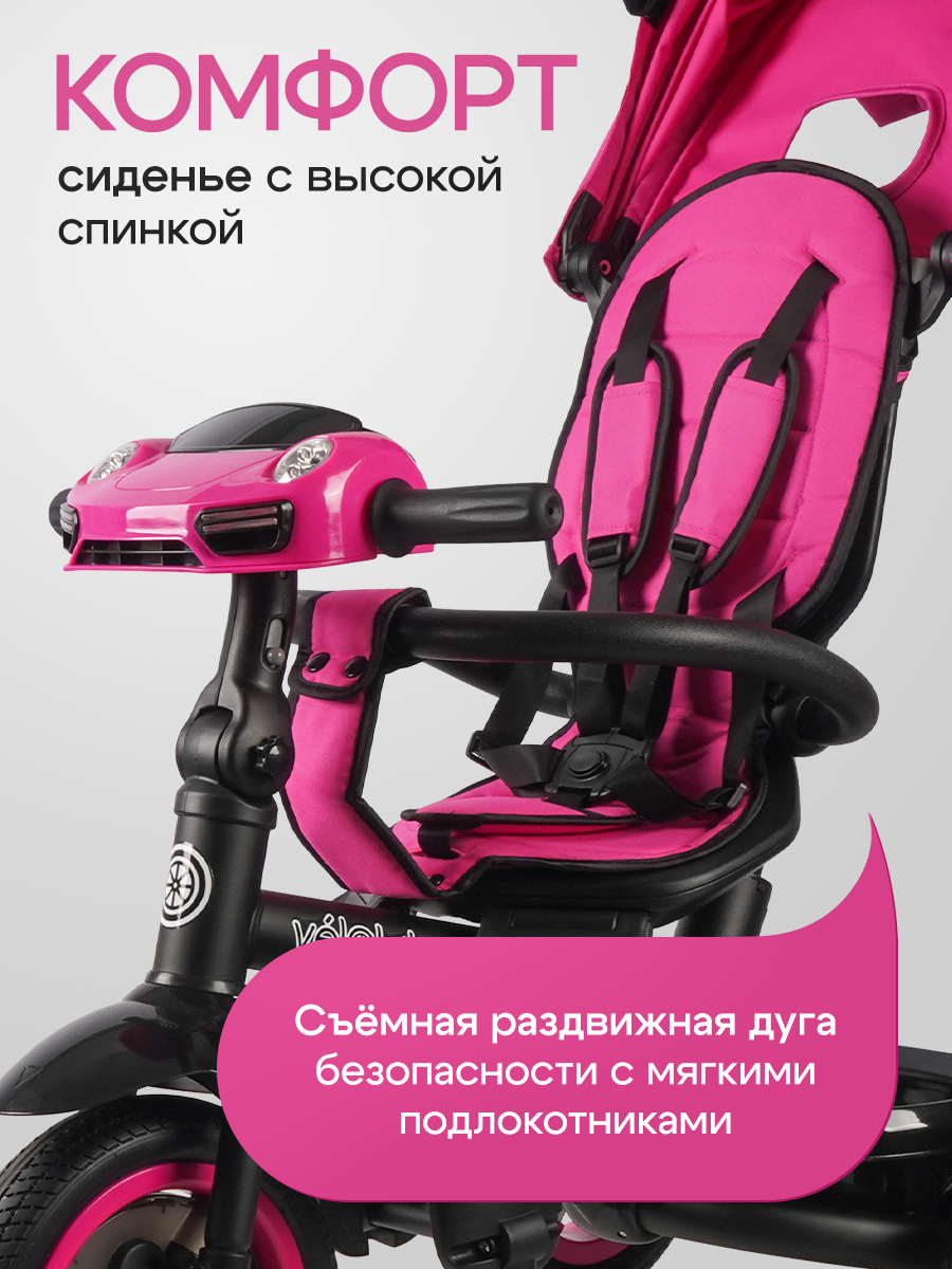 Велосипед трёхколёсный с ручкой прайм PLUS, колёса резиновые, музыкальный модуль, розовый: сравнение цен, характеристики, фото, актуальное наличие и цены.