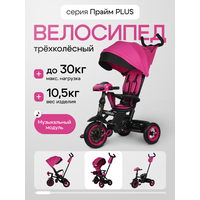 Купить Велосипед трёхколёсный с ручкой прайм PLUS, колёса резиновые, музыкальный модуль, розовый с доставкой по всей России.