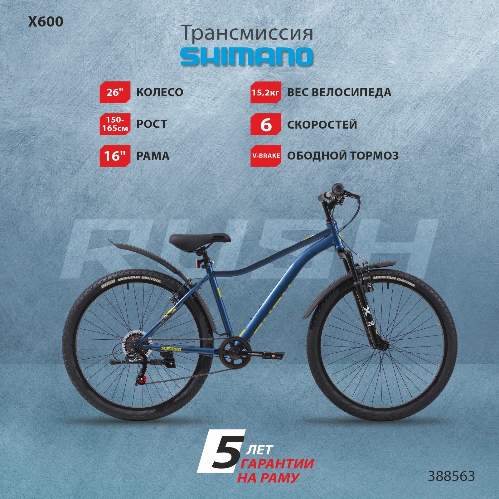 Велосипед взрослый горный 26″ рост 150-165см 6 скоростей синий рама 16″ велик переключатель SHIMANO скоростной RUSH HOUR X 600: сравнение цен, характеристики, фото, актуальное наличие и цены.