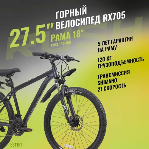 Велосипед взрослый горный дисковый 27,5″ RUSH HOUR RX 705 21 скорость серый рама 18″ рост 165-180 см. скоростной спортвный велик с амортизацией переключатель SHIMANO: сравнение цен, характеристики, фото, актуальное наличие и цены.