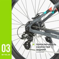 21-скоростная модель байка STELS Miss 6100 укомплектована надежным навесным оборудованием. Здесь применяются модели японской компании Shimano начального уровня. Несмотря на это, комплектующие хорошо зарекомендовали себя, как идеально работающая безотказная и тихая при переключении система трансмиссии. Задняя кассета из семи звезд SHIMANO Acera CS-HG200-7 взаимодействует с переключателем скоростей SHIMANO Altus RD-M310 посредством триггерного шифтера ST-EF500. За переключение системы из трех звезд PROWHEEL отвечает модель SHIMANO Tourney FD-TY500. В итоге райдер получает комплект надежных трансмиссионных деталей, позволяющих с легкостью подобрать наиболее комфортную скорость передвижения для отдельного участка трассы.