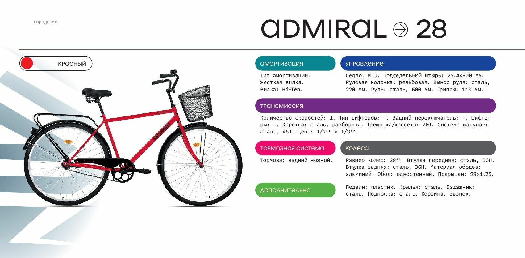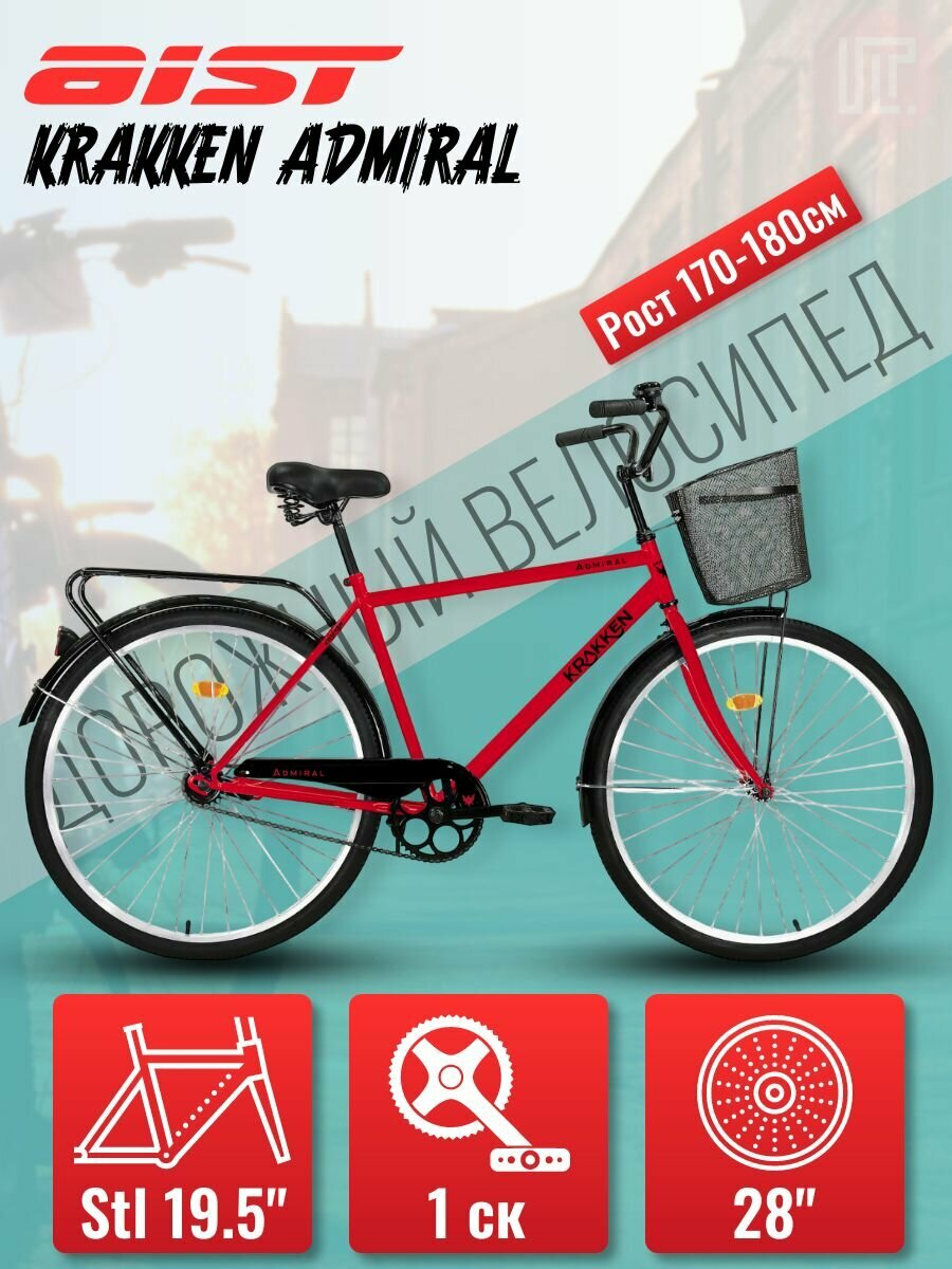Купить Велосипед городской аист KRAKKEN Admiral, размер колес 28″, размер рамы 19,5″, количество скоростей 1, красный +корзина с доставкой по всей России. Велосипед городской аист KRAKKEN Admiral, размер колес 28″, размер рамы 19,5″, количество скоростей 1, красный +корзина: сравнение цен, характеристики, фото, актуальное наличие и цены.