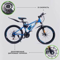 Велосипед взрослый подростковый мужской женский, гравийный горный 24″, Ridelite 21ск синяя рама