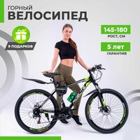 Велосипед взрослый / подростковый мужской / женский, гравийный горный 26″, RIDELITE 21ск черно-зеленая рама 17″, рост 140-180 см