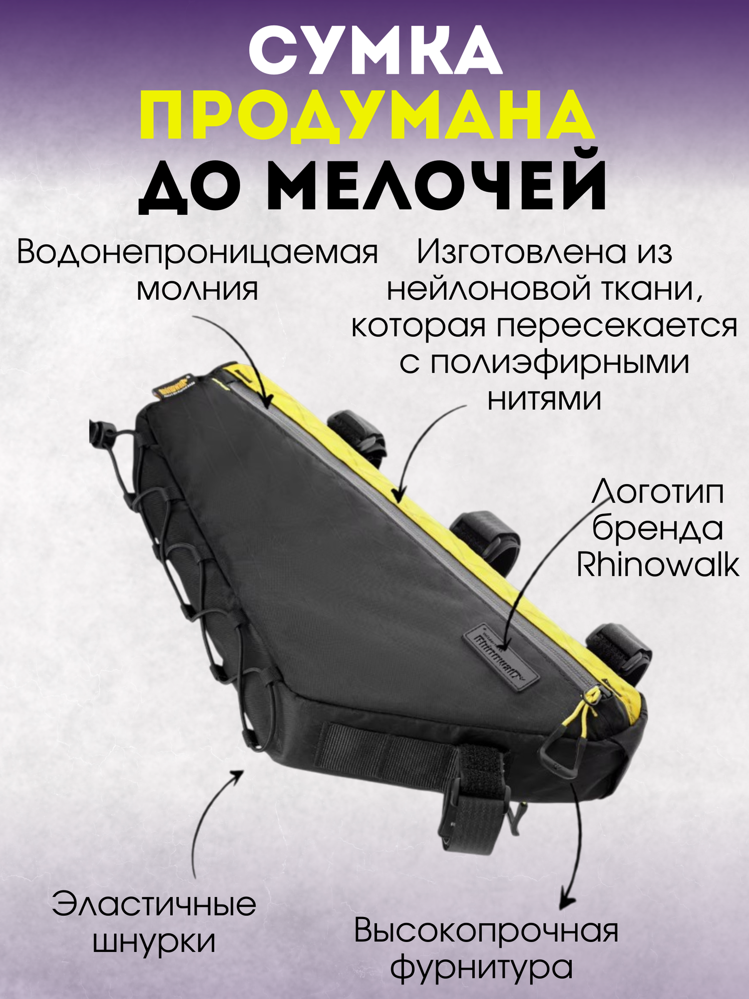 Велосумка под раму Rhinowalk — это идеальное решение для тех, кто ценит удобство и функциональность во время велопрогулок. Эта сумка на раму велосипеда объединяет простоту использования и надежность. Изготовленная из высококачественных материалов, она обеспечивает защиту вашего снаряжения от влаги и пыли, что делает ее незаменимым аксессуаром для активных пользователей.