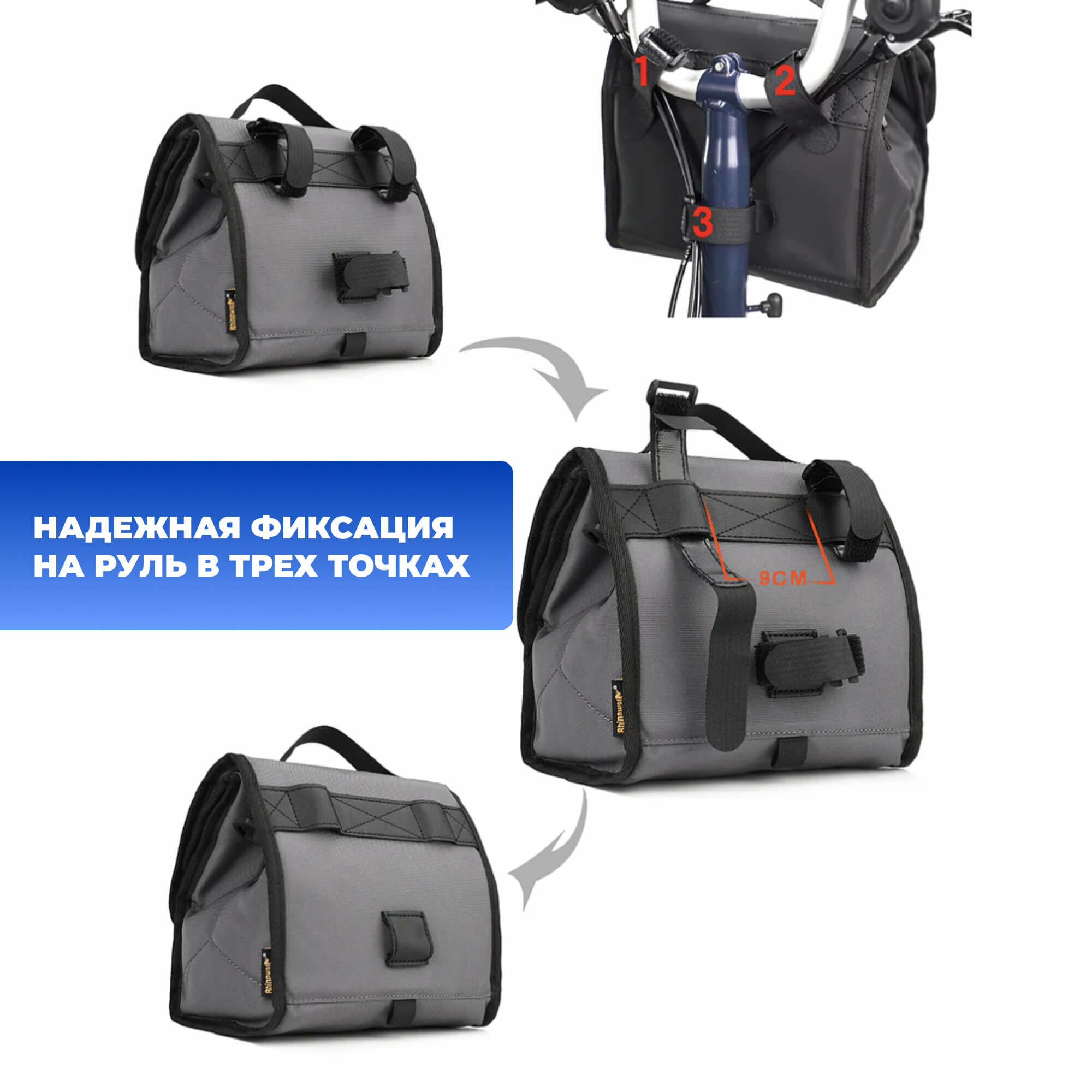 Сумка крепится на руль велосипеда или самоката с помощью удобных ремней. Это позволяет быстро и надежно закрепить сумку на руле, не требуя дополнительных инструментов.
