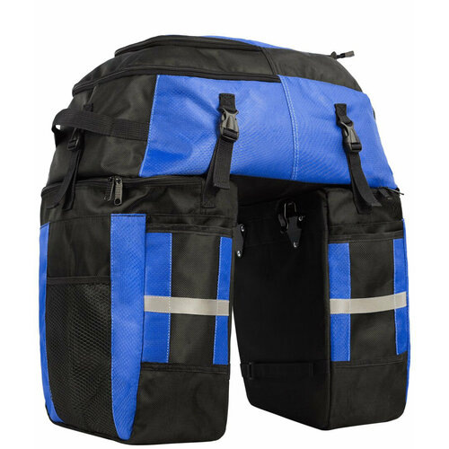 Сумка-трансформер на багажник состоит из 3х элементов: две боковые сумки и верхняя сумка-рюкзак.