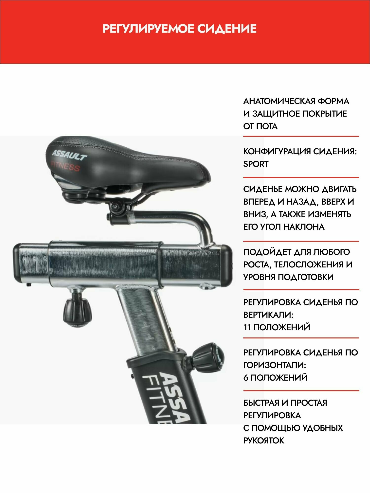 - Надежность и износостойкость. Прочная стальная рама, специальное порошковое напыление, дополнительное зачехление механизма – все это делает Assault AirBike тренажером, требующим минимального обслуживания.