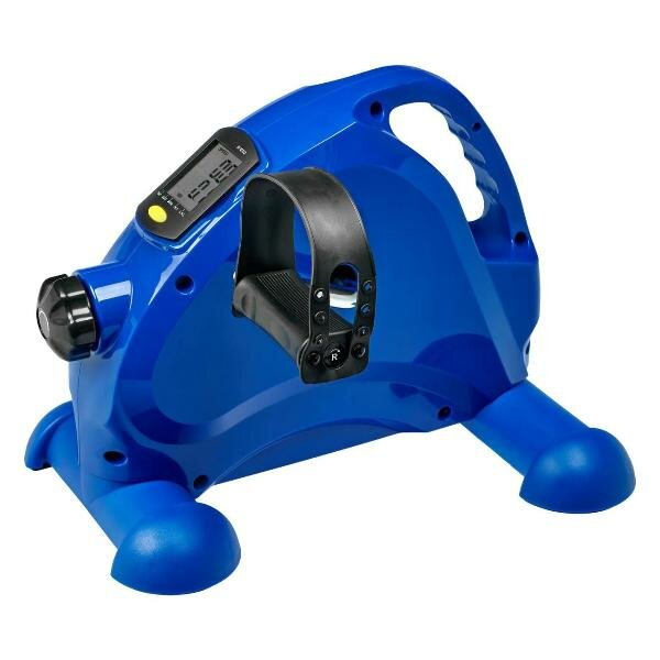 Компактный велотренажер Bradex SF 1012 весом 3,2 кг обладает габаритами 32,5х39х40,5 см. Для удобства перемещения корпус снабжен ручкой. Устойчивость обеспечивают резиновые упоры. Доступно регулирование положений педалей. Они снабжены фиксаторами. Модель применяется для домашней тренировки рук и ног. Максимальный вес пользователя не должен превышать 120 кг. Тренажер работает от элементов питания типа ААА. Функционирует в одном скоростном режиме, интенсивность тренировки можно регулировать. Цвет модели — синий. На корпусе присутствует цифровой дисплей. Он отображает пройденную дистанцию, время тренировки, выбранную скорость, расход калорий.